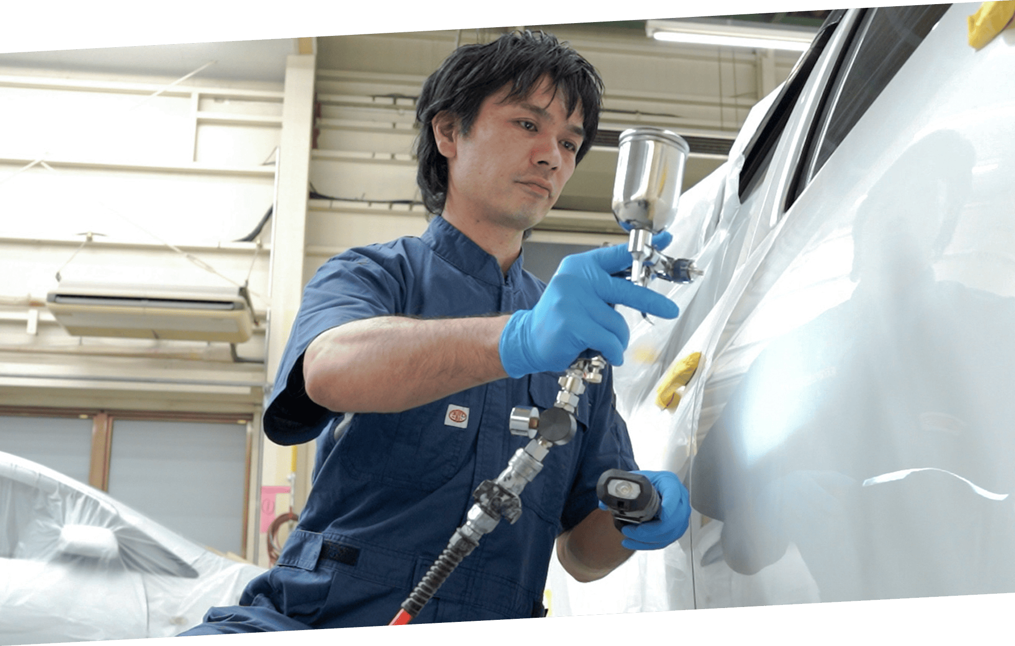 バンパーやフェンダー、ドアなど自動車外装に生じた傷をクイックに修復し、お客様への納車をスムーズにするお手伝いをさせていただきます。水性補修塗料を主に使用するため、安全面に配慮した施工を実現。出張での施工を可能にしました。そのため一般的な板金修理よりも大幅に納期と価格を抑えながら、お車を綺麗にさせていただきます。