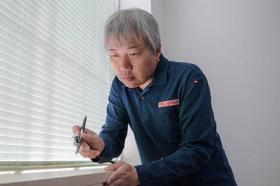 その中でも当店は住宅のフローリングや階段、家具などの木部についた傷やアルミ・樹脂サッシなどの傷を補修し、元の風合いを再現して住まいの問題を解決いたします。