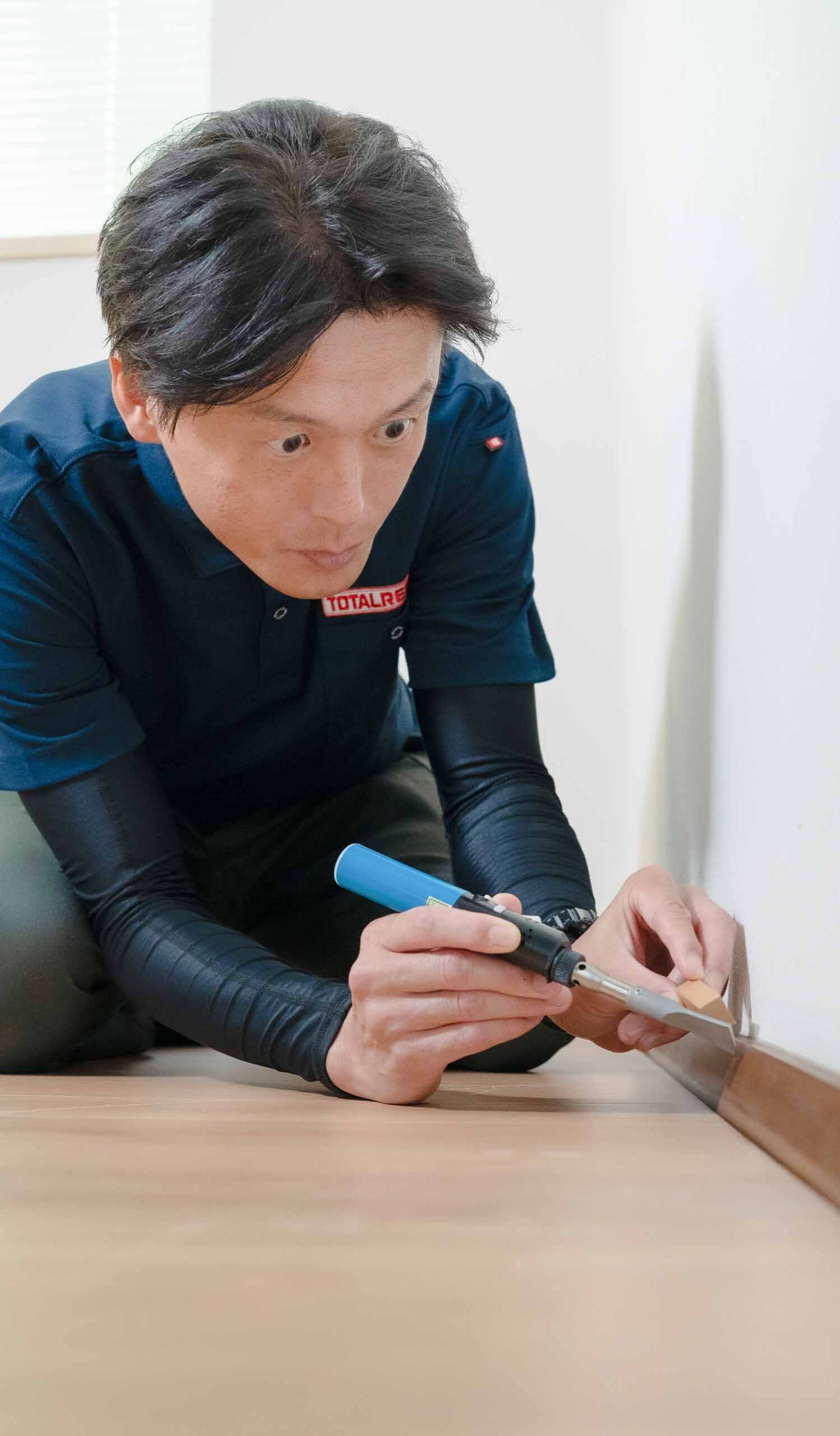 トータルリペアは、自動車や住宅をはじめ、家具、革製品などの傷や劣化を修復するサービスを全国規模で展開しています。当店は、1,000店舗以上ある加盟店の一つとして、特に住宅関連のリペアに特化しております。