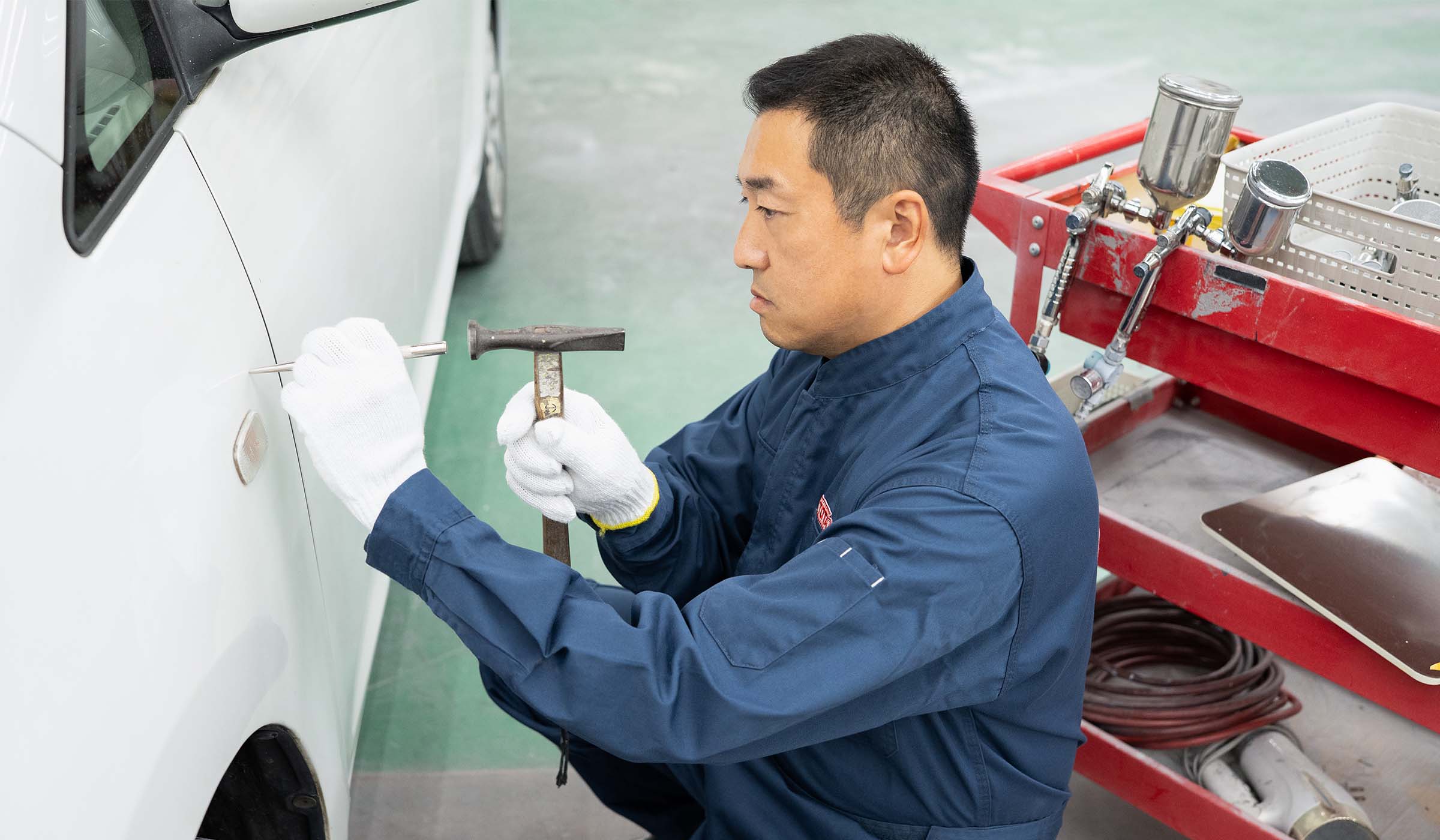 バンパーやフェンダー、ドアなど自動車外装に生じた傷をクイックに修復し、お客様への納車をスムーズにするお手伝いをさせていただきます。水性補修塗料を主に使用するため、安全面に配慮した施工を実現。出張での施工を可能にしました。そのため一般的な板金修理よりも大幅に納期と価格を抑えながら、お車を綺麗にさせていただきます。