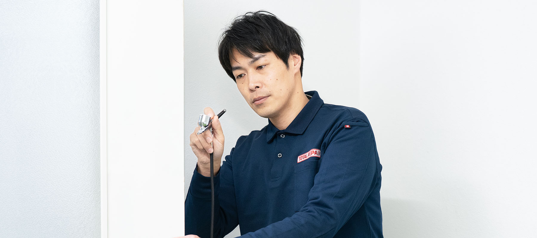 トータルリペアは、自動車や住宅をはじめ、家具、革製品などの傷や劣化を修復するサービスを全国規模で展開しています。当店は、1,000店舗以上ある加盟店の一つとして、特に住宅関連のリペアに特化しております。