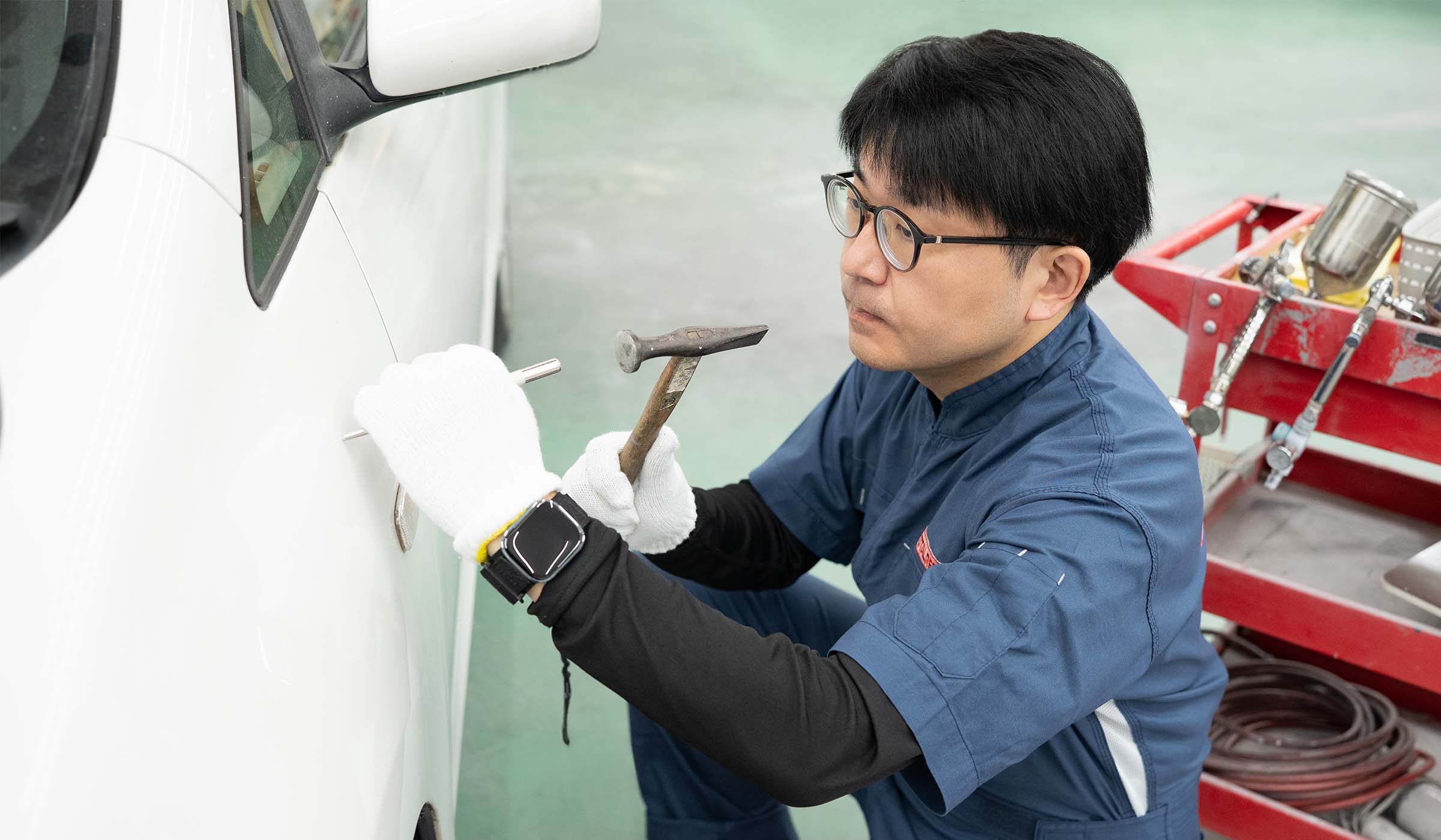 バンパー、ドア、フェンダーなどの外板パネルに生じた傷、へこみを特殊技術で修復します。補修する際の部品脱着が少なく、一般的な板金よりも短納期かつ安価に修理いたします。出張施工もいたしますのでお気軽にお問い合わせください。