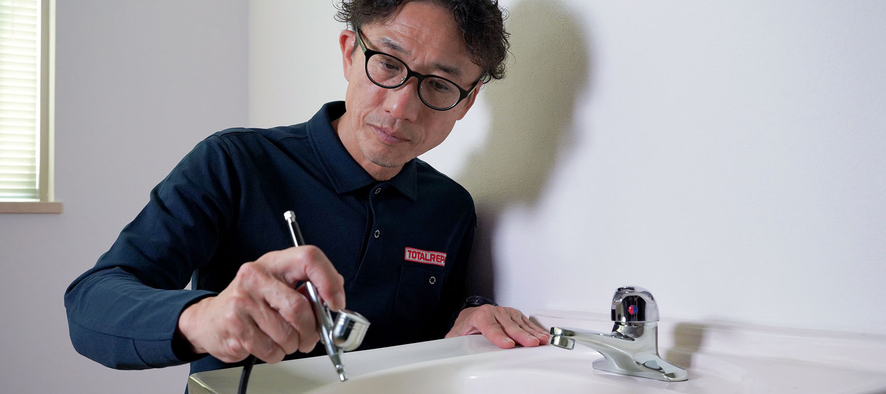 トータルリペアは、自動車や住宅をはじめ、家具、革製品などの傷や劣化を修復するサービスを全国規模で展開しています。当店は、1,000店舗以上ある加盟店の一つとして、特に住宅関連のリペアに特化しております。
