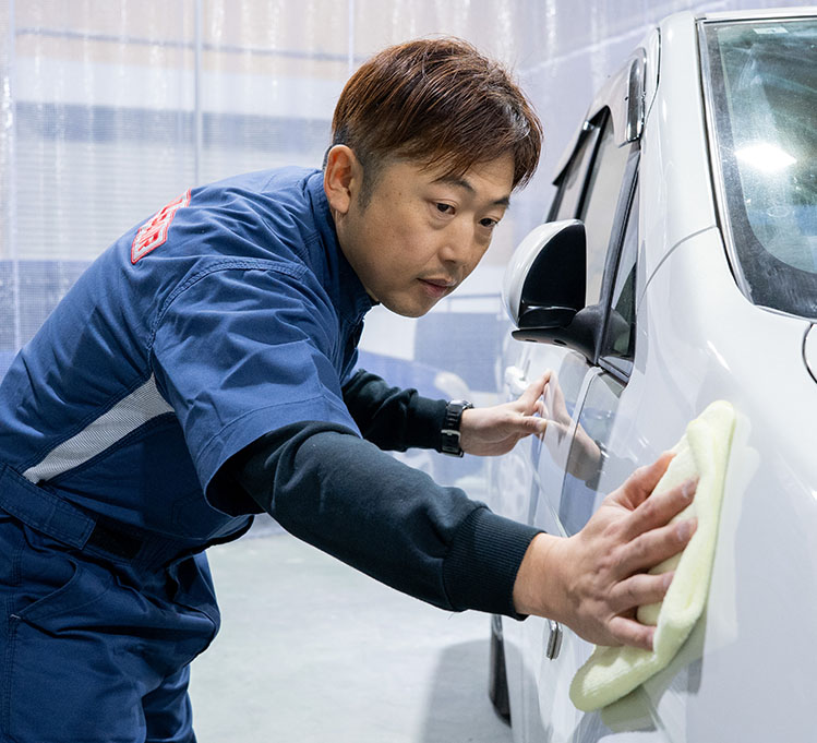 特殊技術を習得するための専門研修と技術テストをクリアした職人のみが施工。クオリティーの高さから、中古車販売店やパーツショップなど、業界のプロにも選ばれています。