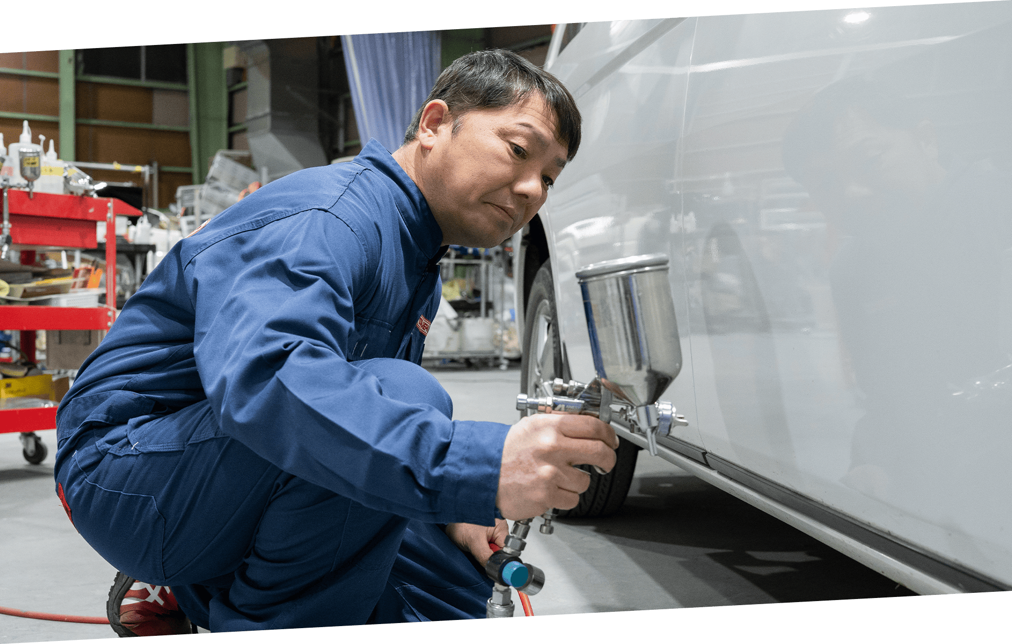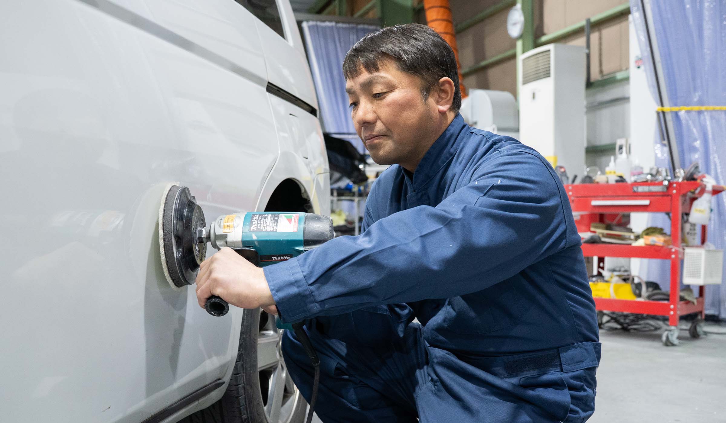 バンパーやフェンダー、ドアなど自動車外装に生じた傷をクイックに修復し、お客様への納車をスムーズにするお手伝いをさせていただきます。水性補修塗料を主に使用するため、安全面に配慮した施工を実現。出張での施工を可能にしました。そのため一般的な板金修理よりも大幅に納期と価格を抑えながら、お車を綺麗にさせていただきます。