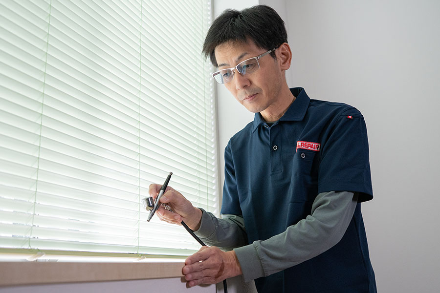 その中でも当店は住宅のフローリングや階段、家具などの木部についた傷やアルミ・樹脂サッシなどの傷を補修し、元の風合いを再現して住まいの問題を解決いたします。