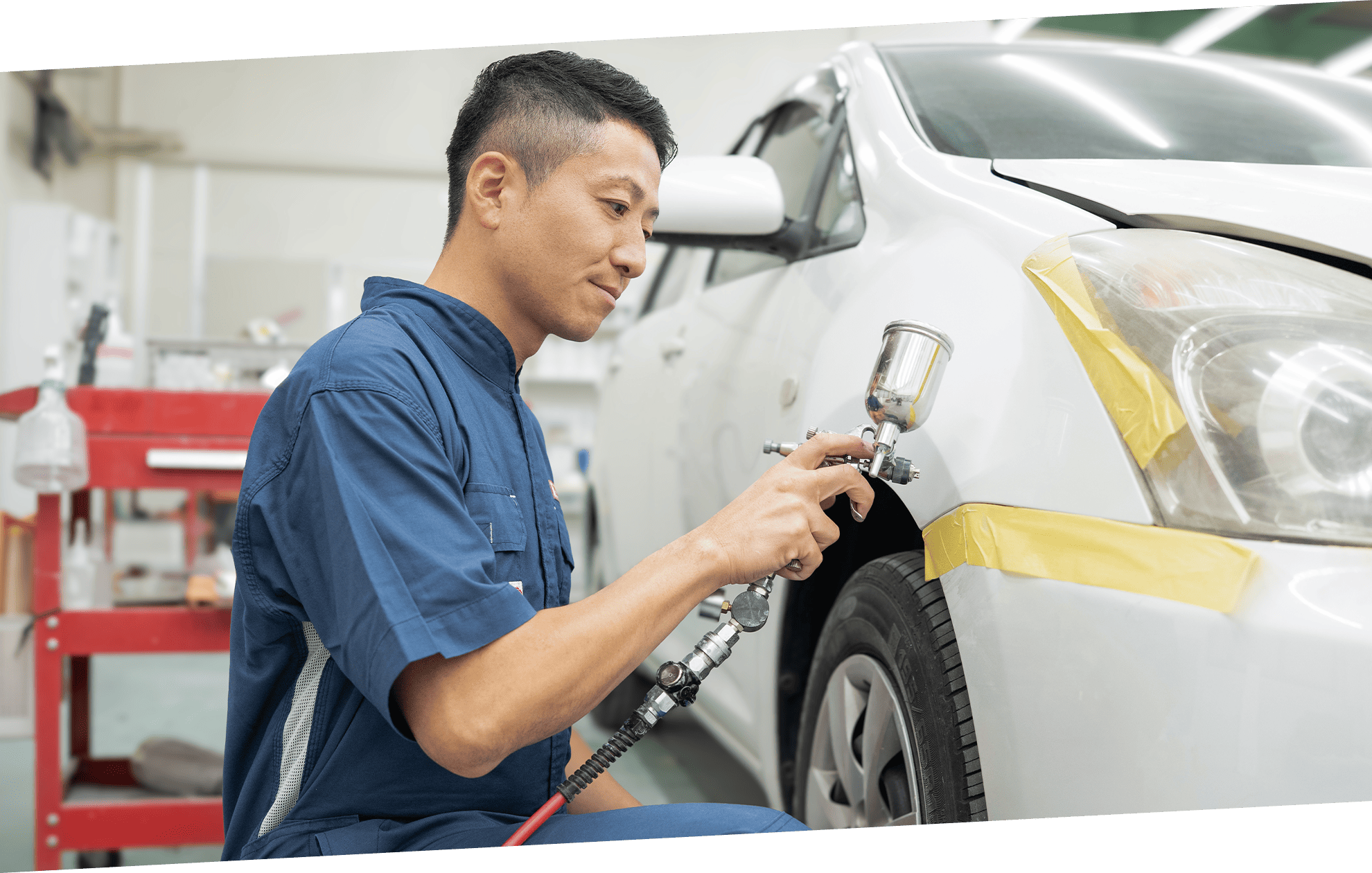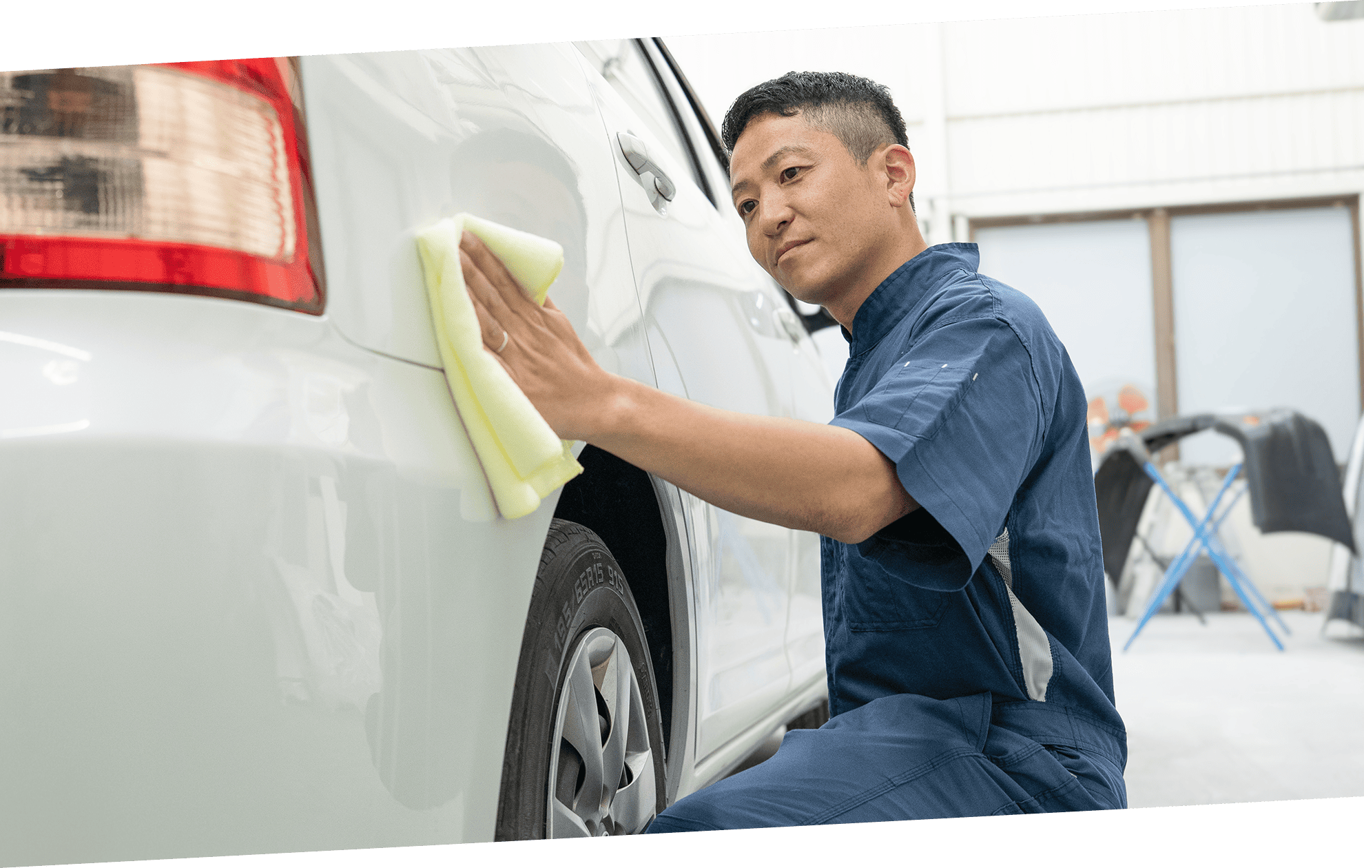 バンパーやフェンダー、ドアなど自動車外装に生じた傷をクイックに修復し、お客様への納車をスムーズにするお手伝いをさせていただきます。水性補修塗料を主に使用するため、安全面に配慮した施工を実現。出張での施工を可能にしました。そのため一般的な板金修理よりも大幅に納期と価格を抑えながら、お車を綺麗にさせていただきます。