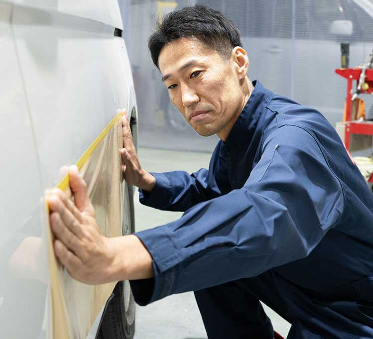 特殊技術を習得するための専門研修と技術テストをクリアした職人のみが施工。クオリティーの高さから、中古車販売店やパーツショップなど、業界のプロにも選ばれています。