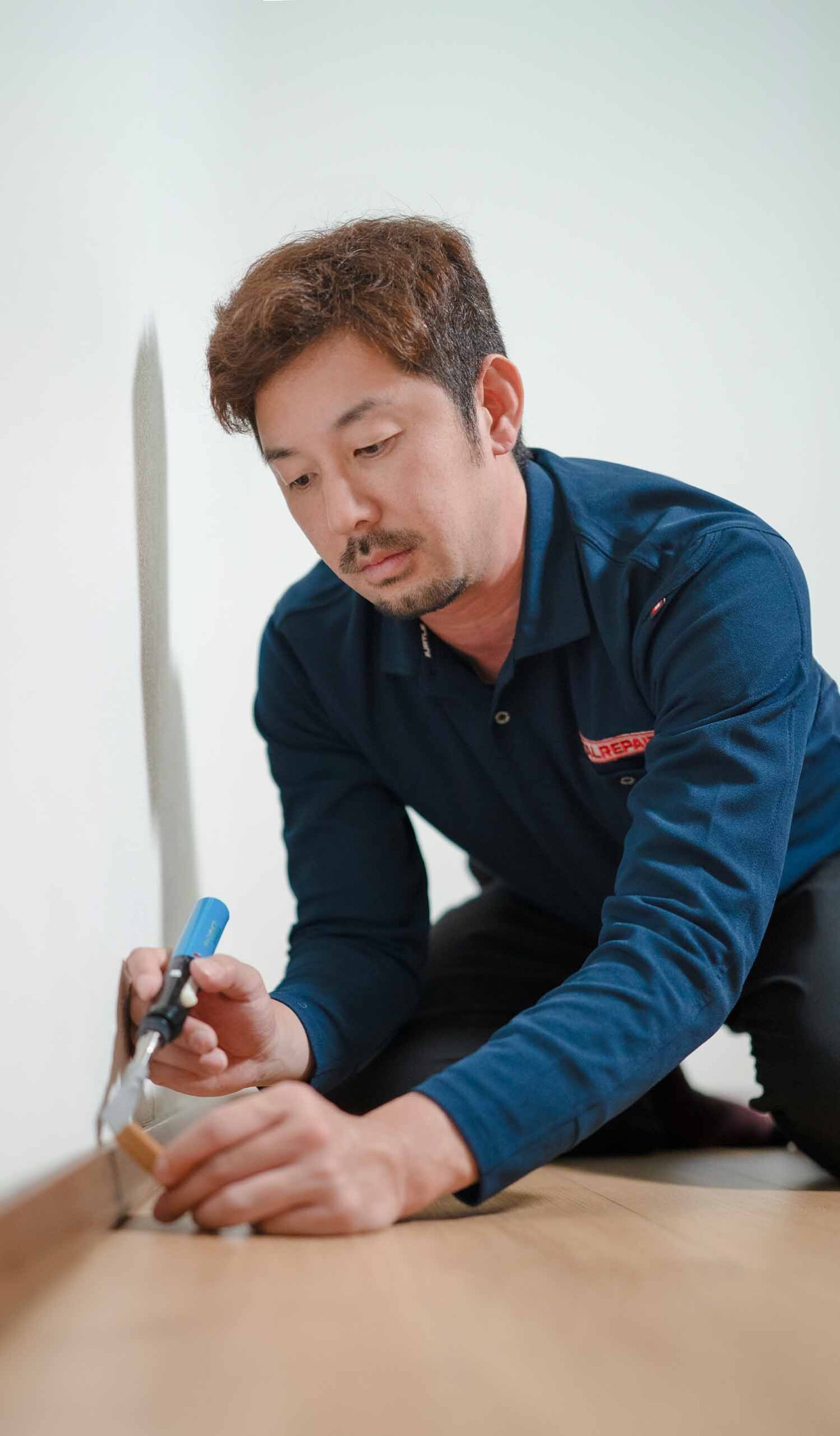 トータルリペアは、自動車や住宅をはじめ、家具、革製品などの傷や劣化を修復するサービスを全国規模で展開しています。当店は、1,000店舗以上ある加盟店の一つとして、特に住宅関連のリペアに特化しております。