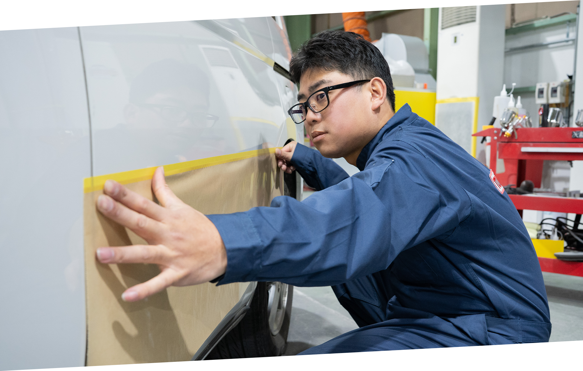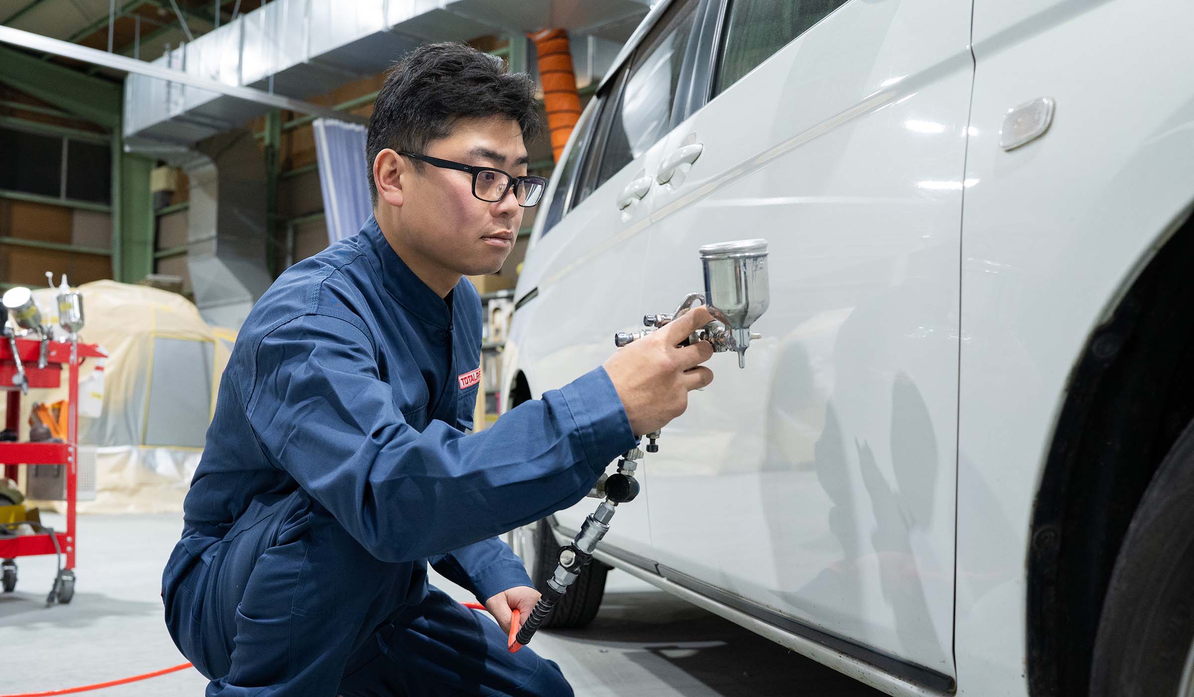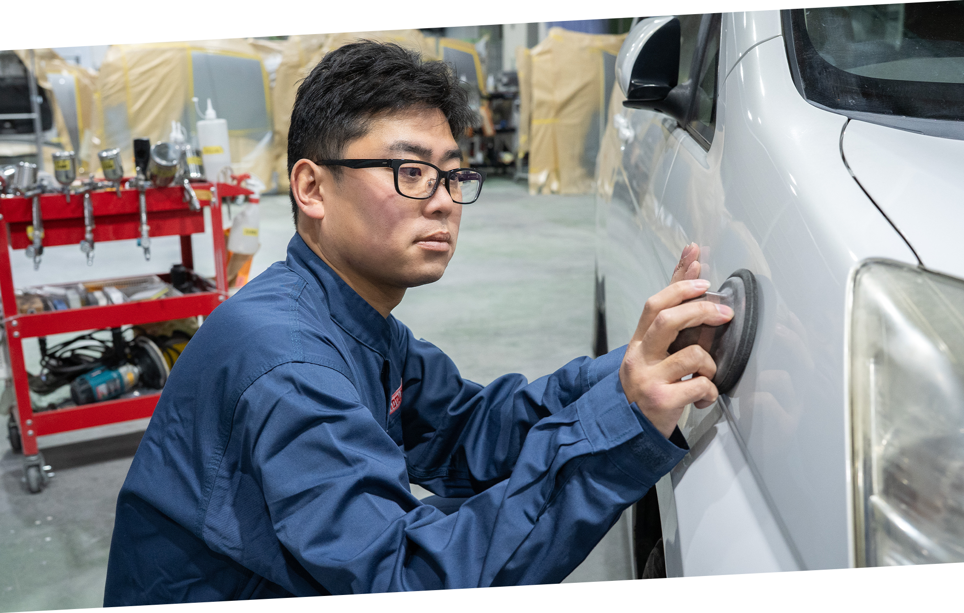 バンパーやフェンダー、ドアなど自動車外装に生じた傷をクイックに修復し、お客様への納車をスムーズにするお手伝いをさせていただきます。水性補修塗料を主に使用するため、安全面に配慮した施工を実現。出張での施工を可能にしました。そのため一般的な板金修理よりも大幅に納期と価格を抑えながら、お車を綺麗にさせていただきます。
