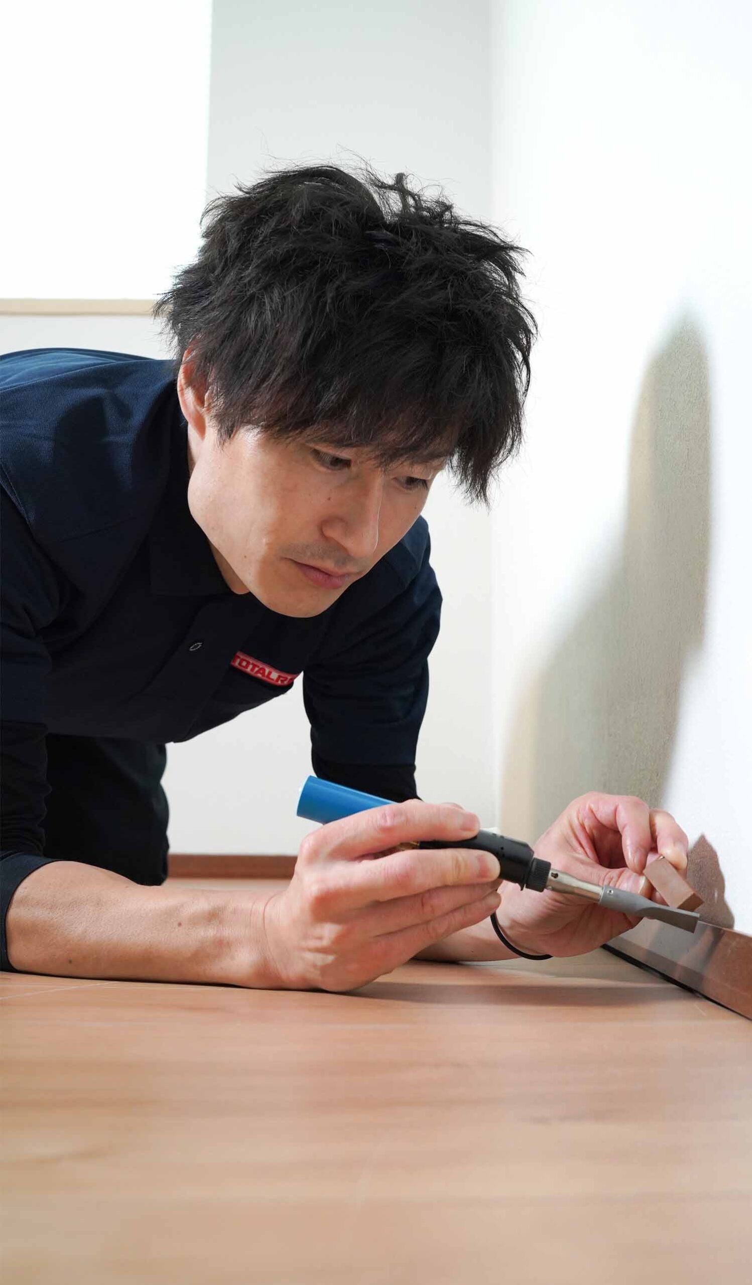 トータルリペアは、自動車や住宅をはじめ、家具、革製品などの傷や劣化を修復するサービスを全国規模で展開しています。当店は、1,000店舗以上ある加盟店の一つとして、特に住宅関連のリペアに特化しております。
