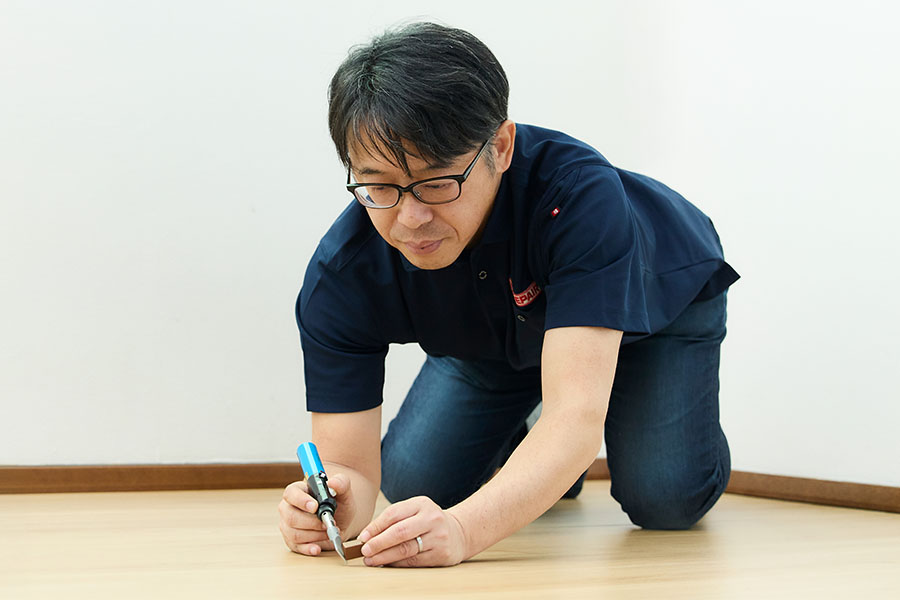 その中でも当店は住宅のフローリングや階段、家具などの木部についた傷やアルミ・樹脂サッシなどの傷を補修し、元の風合いを再現して住まいの問題を解決いたします。