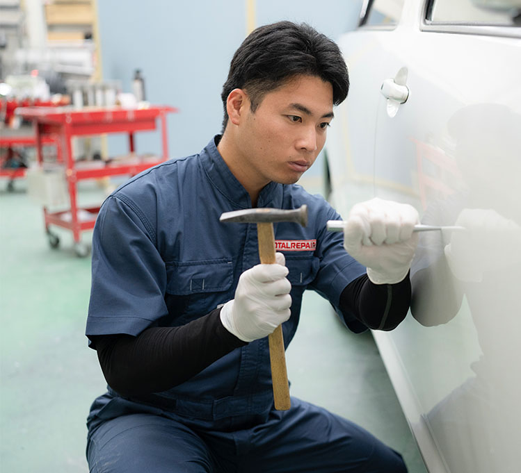 その中でも当店は自動車外装についた傷、へこみ、ゆがみを特殊技術で補修いたします。出張で施工させていただくため自動車を積載する手間も不要。一般的な板金と比較し短納期かつ安価な修理を実現することに成功しました。