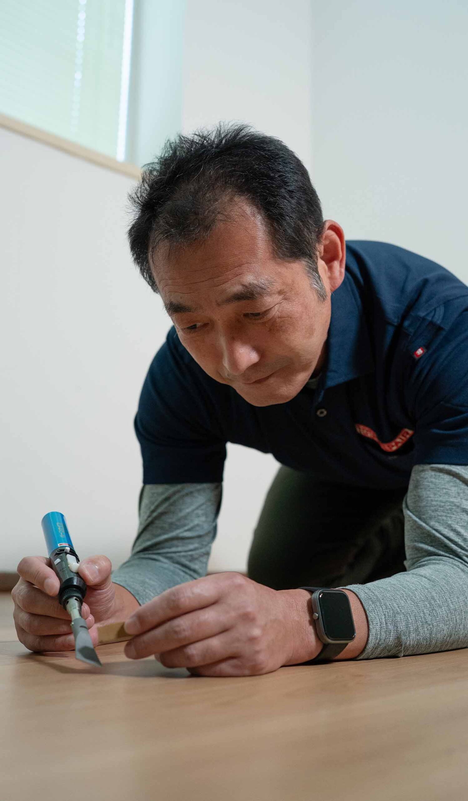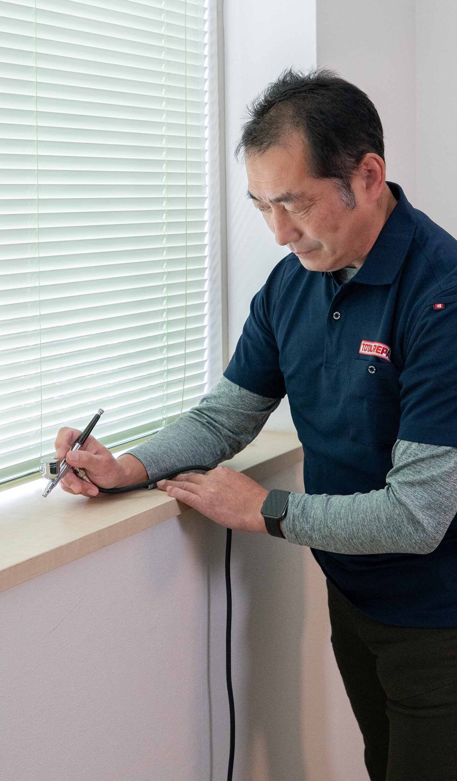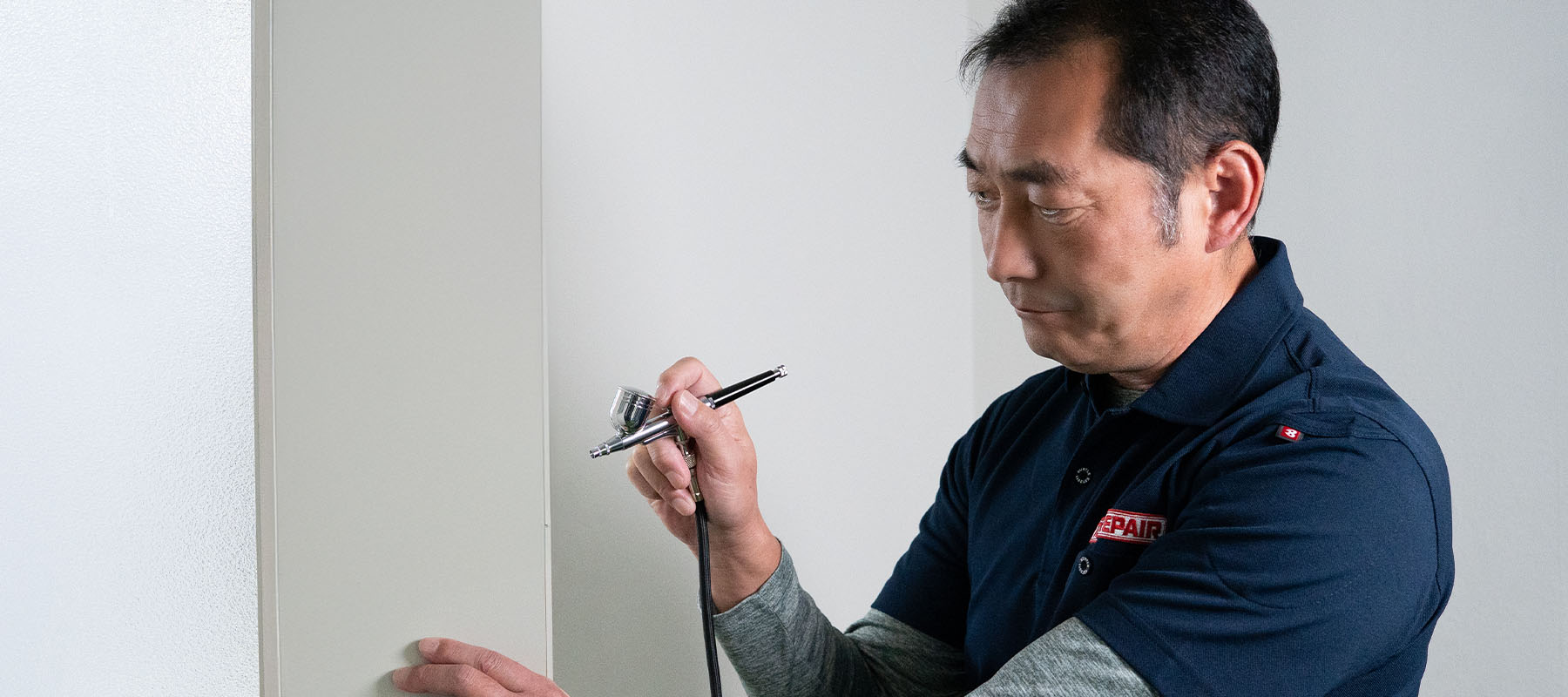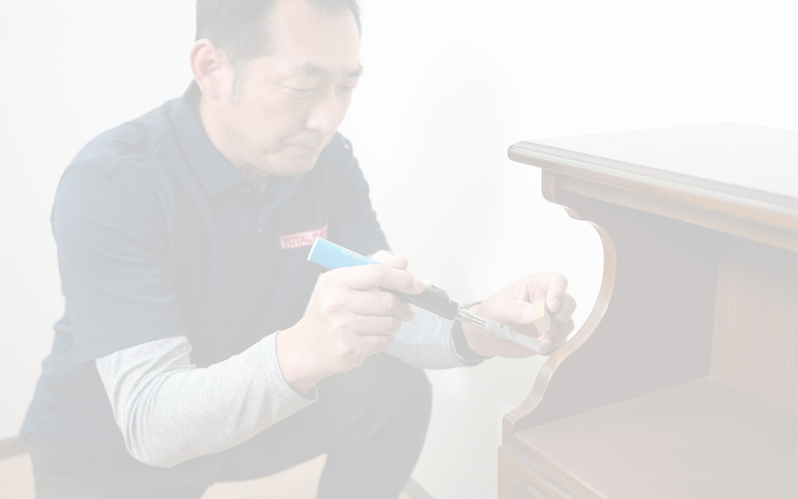トータルリペアは、自動車や住宅をはじめ、家具、革製品などの傷や劣化を修復するサービスを全国規模で展開しています。当店は、1,000店舗以上ある加盟店の一つとして、特に住宅関連のリペアに特化しております。
