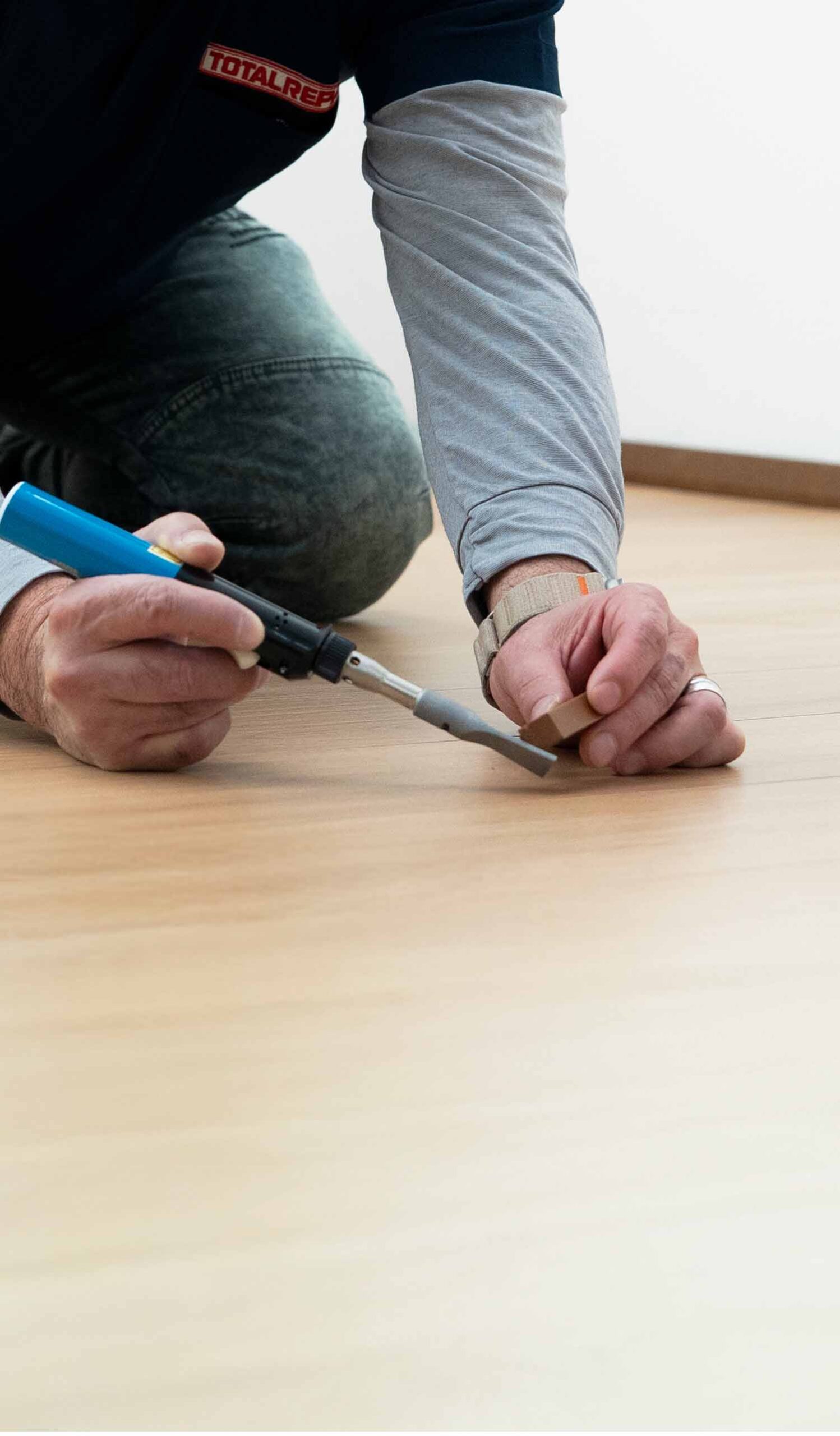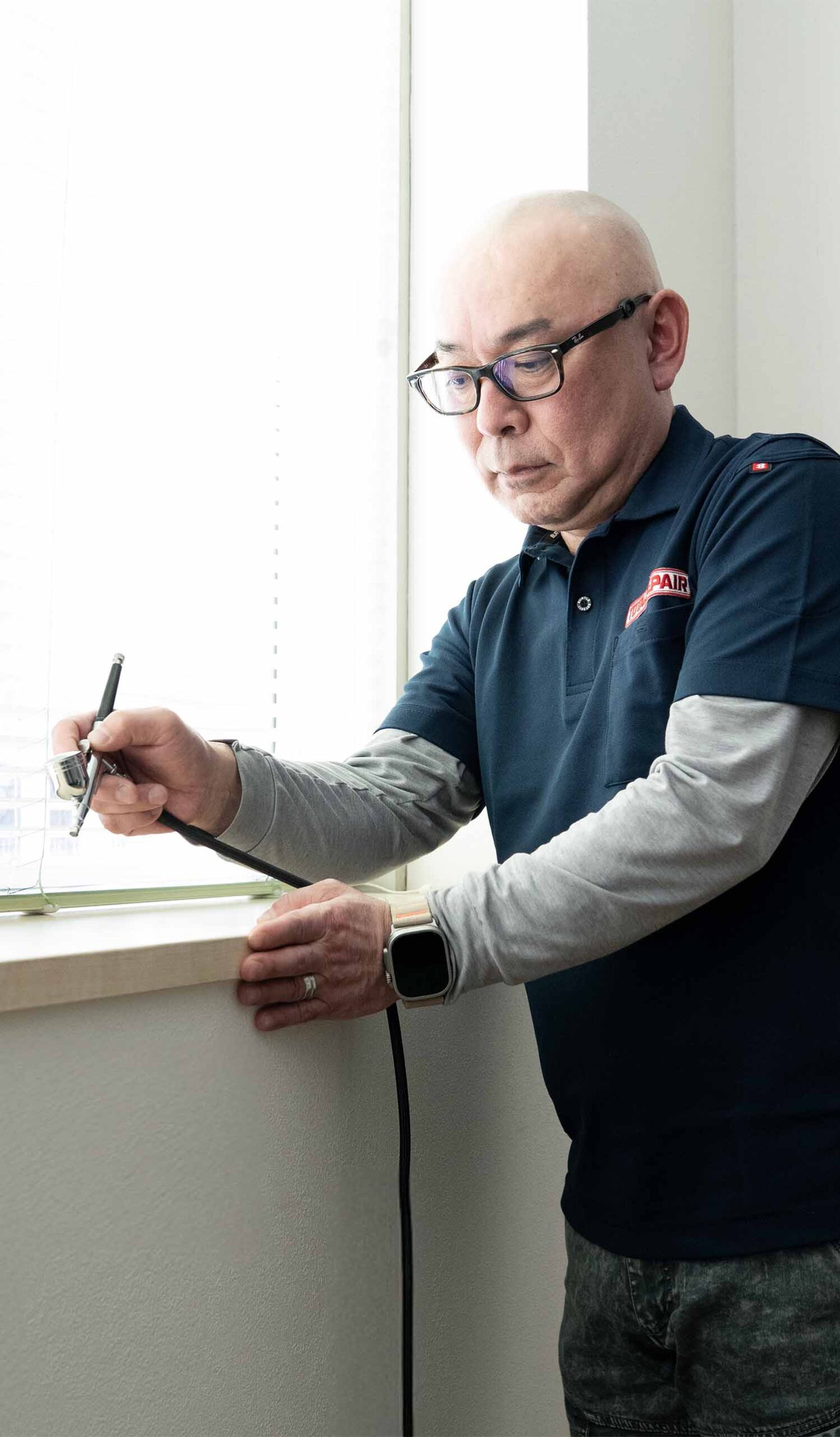 トータルリペアは、自動車や住宅をはじめ、家具、革製品などの傷や劣化を修復するサービスを全国規模で展開しています。当店は、1,000店舗以上ある加盟店の一つとして、特に住宅関連のリペアに特化しております。