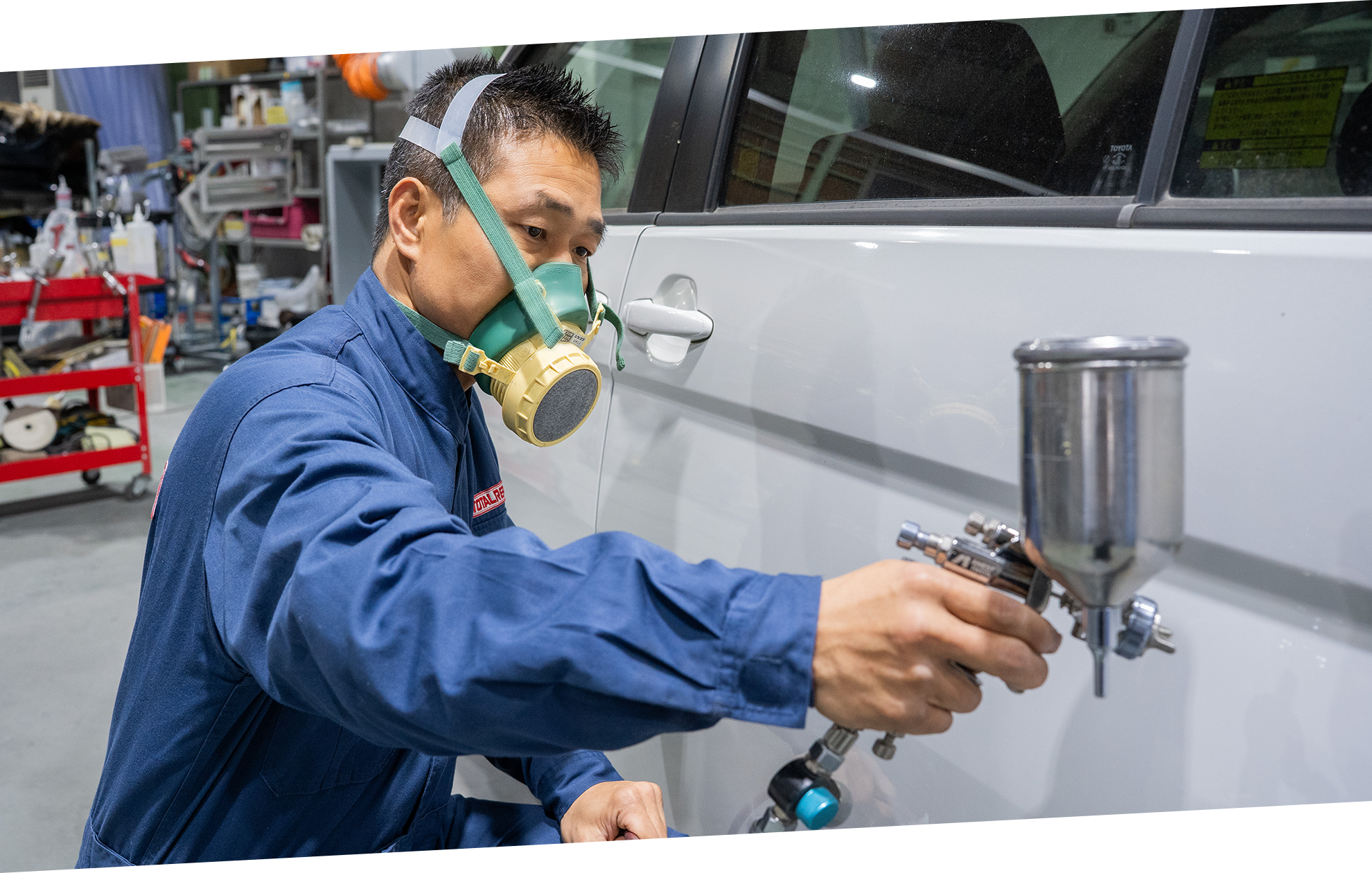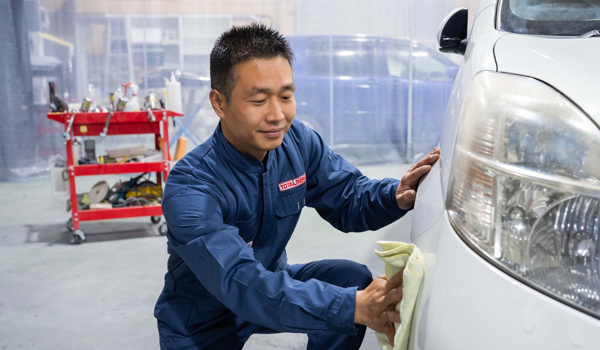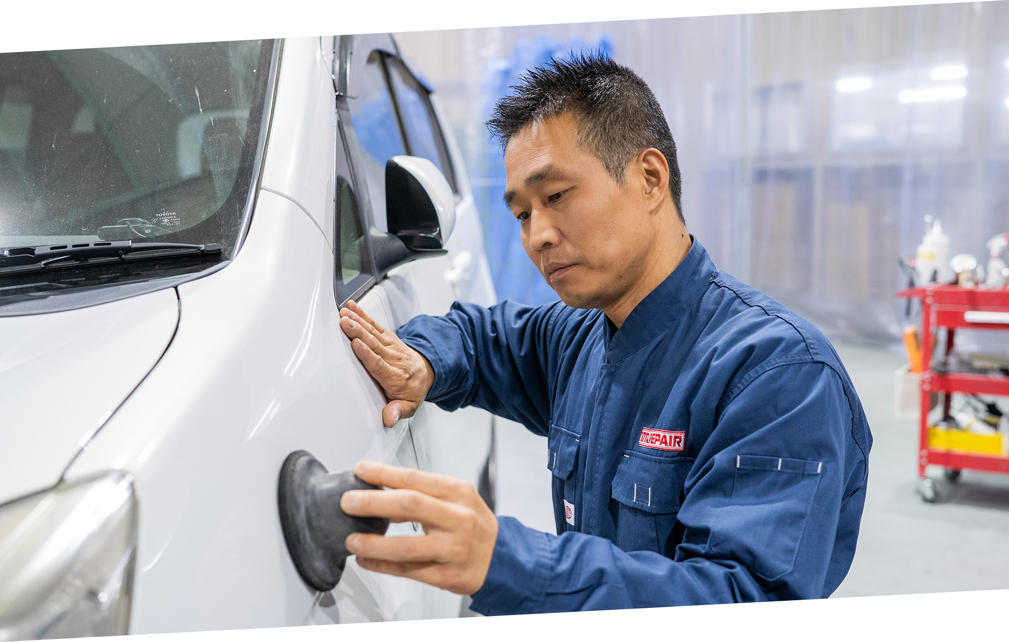 バンパーやフェンダー、ドアなど自動車外装に生じた傷をクイックに修復し、お客様への納車をスムーズにするお手伝いをさせていただきます。水性補修塗料を主に使用するため、安全面に配慮した施工を実現。出張での施工を可能にしました。そのため一般的な板金修理よりも大幅に納期と価格を抑えながら、お車を綺麗にさせていただきます。