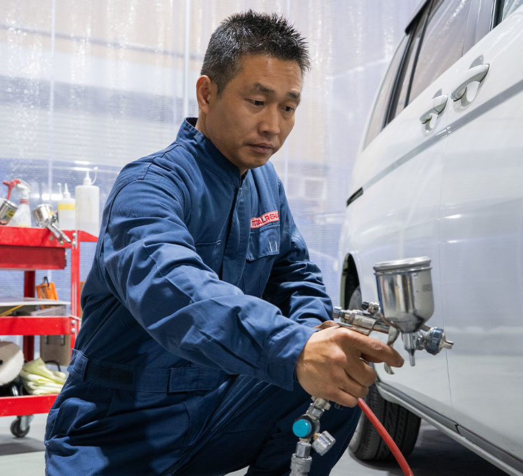 特殊技術を習得するための専門研修と技術テストをクリアした職人のみが施工。クオリティーの高さから、中古車販売店やパーツショップなど、業界のプロにも選ばれています。