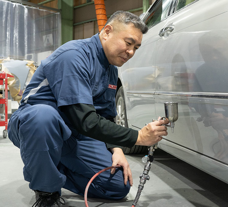 特殊技術を習得するための専門研修と技術テストをクリアした職人のみが施工。クオリティーの高さから、中古車販売店やパーツショップなど、業界のプロにも選ばれています。