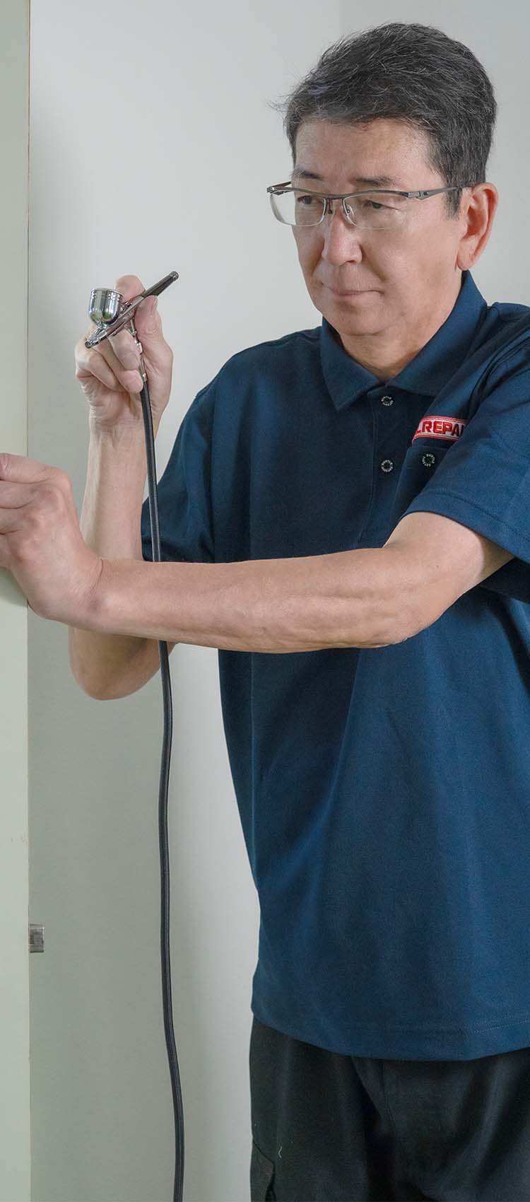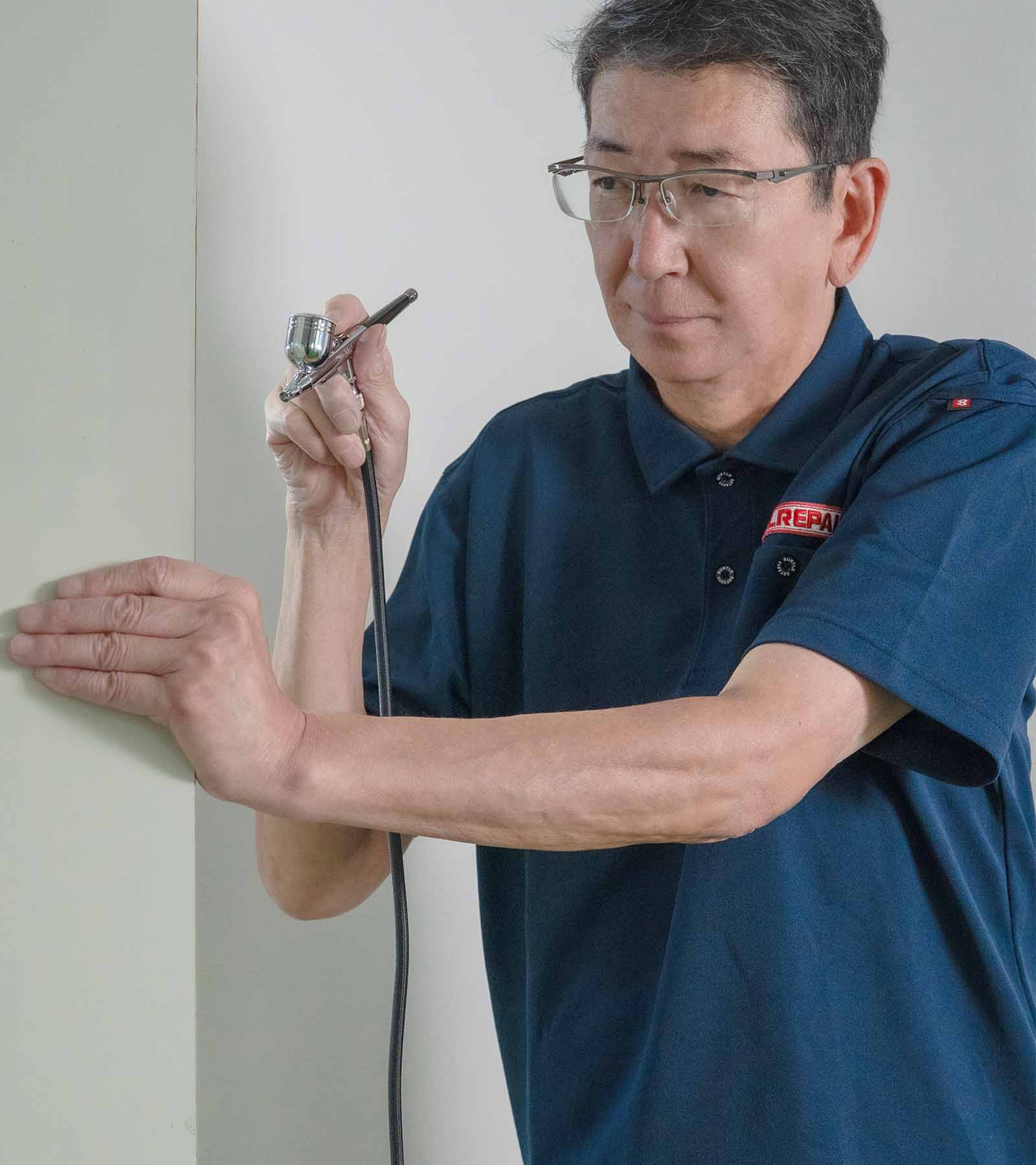トータルリペアは、自動車や住宅をはじめ、家具、革製品などの傷や劣化を修復するサービスを全国規模で展開しています。当店は、1,000店舗以上ある加盟店の一つとして、特に住宅関連のリペアに特化しております。