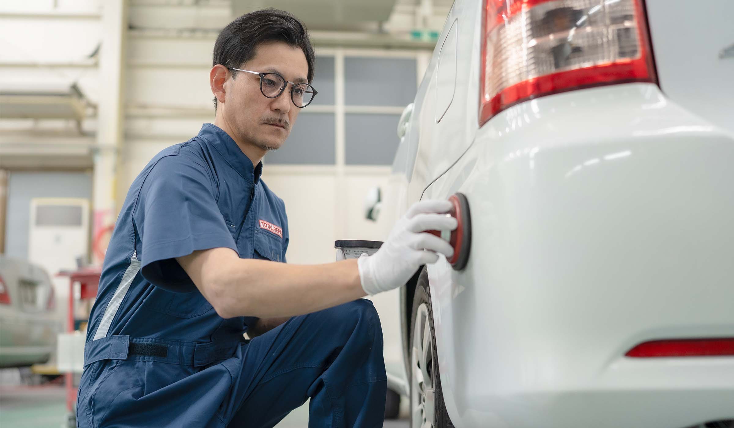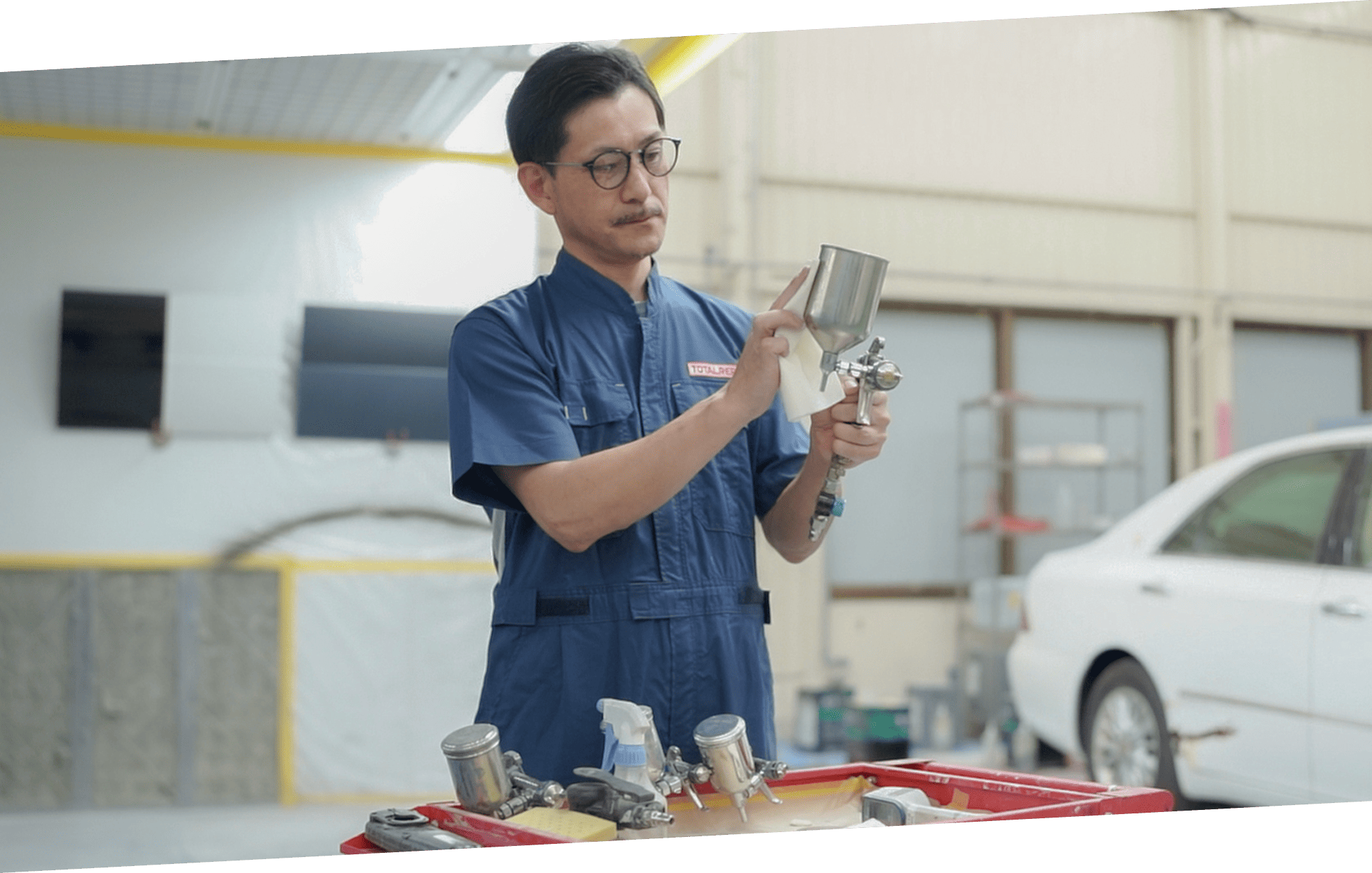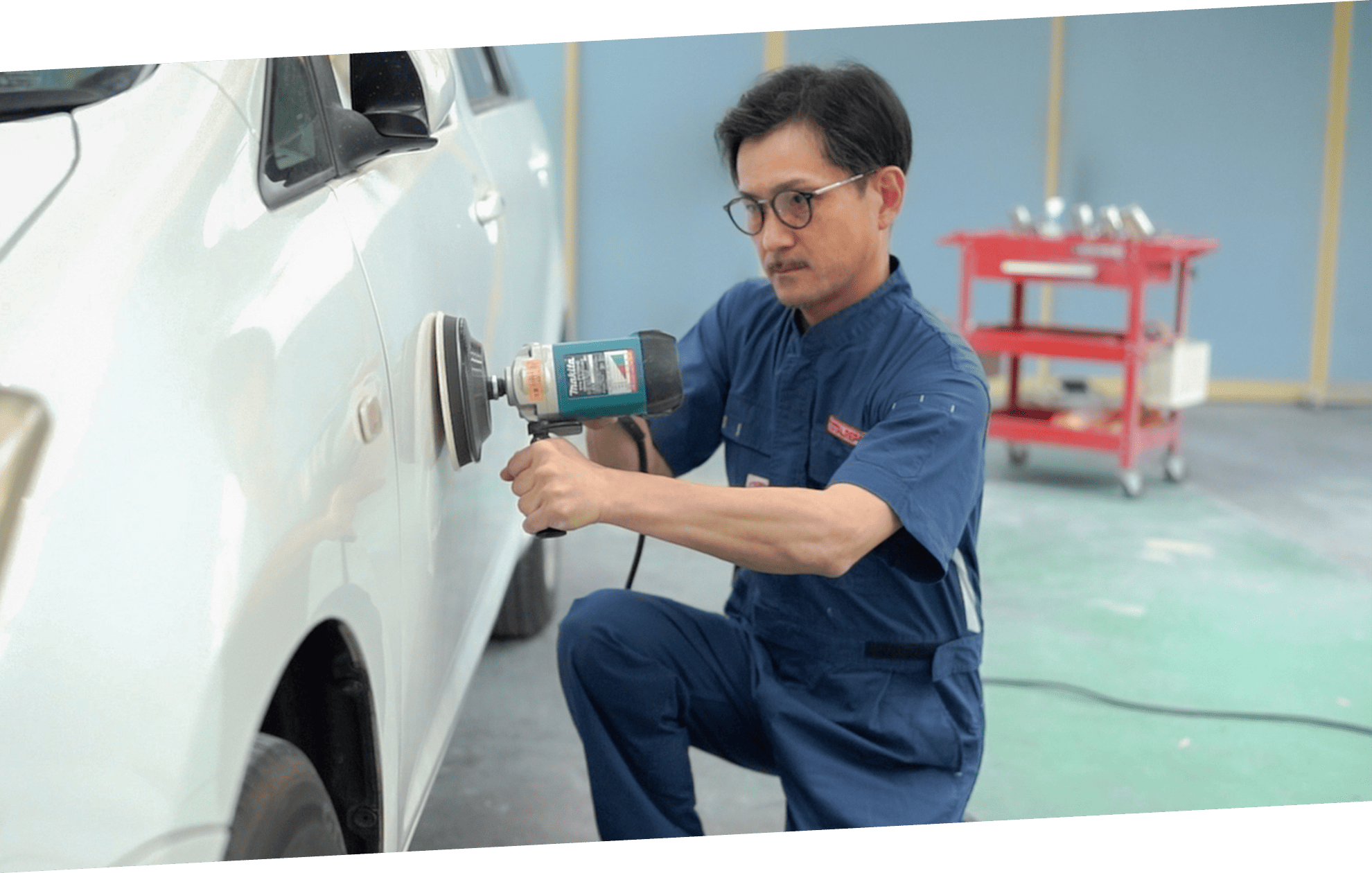 バンパーやフェンダー、ドアなど自動車外装に生じた傷をクイックに修復し、お客様への納車をスムーズにするお手伝いをさせていただきます。水性補修塗料を主に使用するため、安全面に配慮した施工を実現。出張での施工を可能にしました。そのため一般的な板金修理よりも大幅に納期と価格を抑えながら、お車を綺麗にさせていただきます。