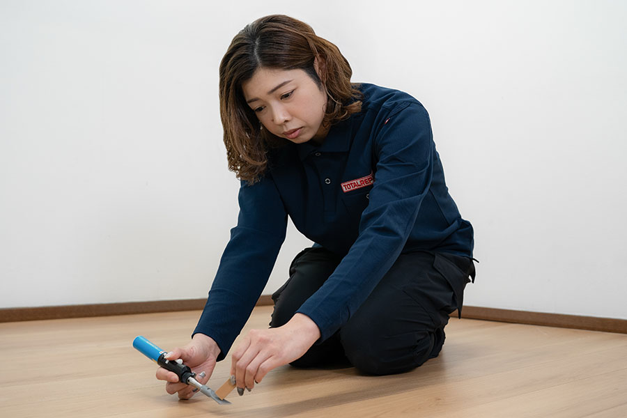 その中でも当店は住宅のフローリングや階段、家具などの木部についた傷やアルミ・樹脂サッシなどの傷を補修し、元の風合いを再現して住まいの問題を解決いたします。