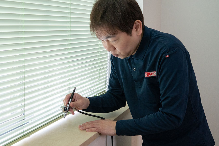その中でも当店は住宅のフローリングや階段、家具などの木部についた傷やアルミ・樹脂サッシなどの傷を補修し、元の風合いを再現して住まいの問題を解決いたします。