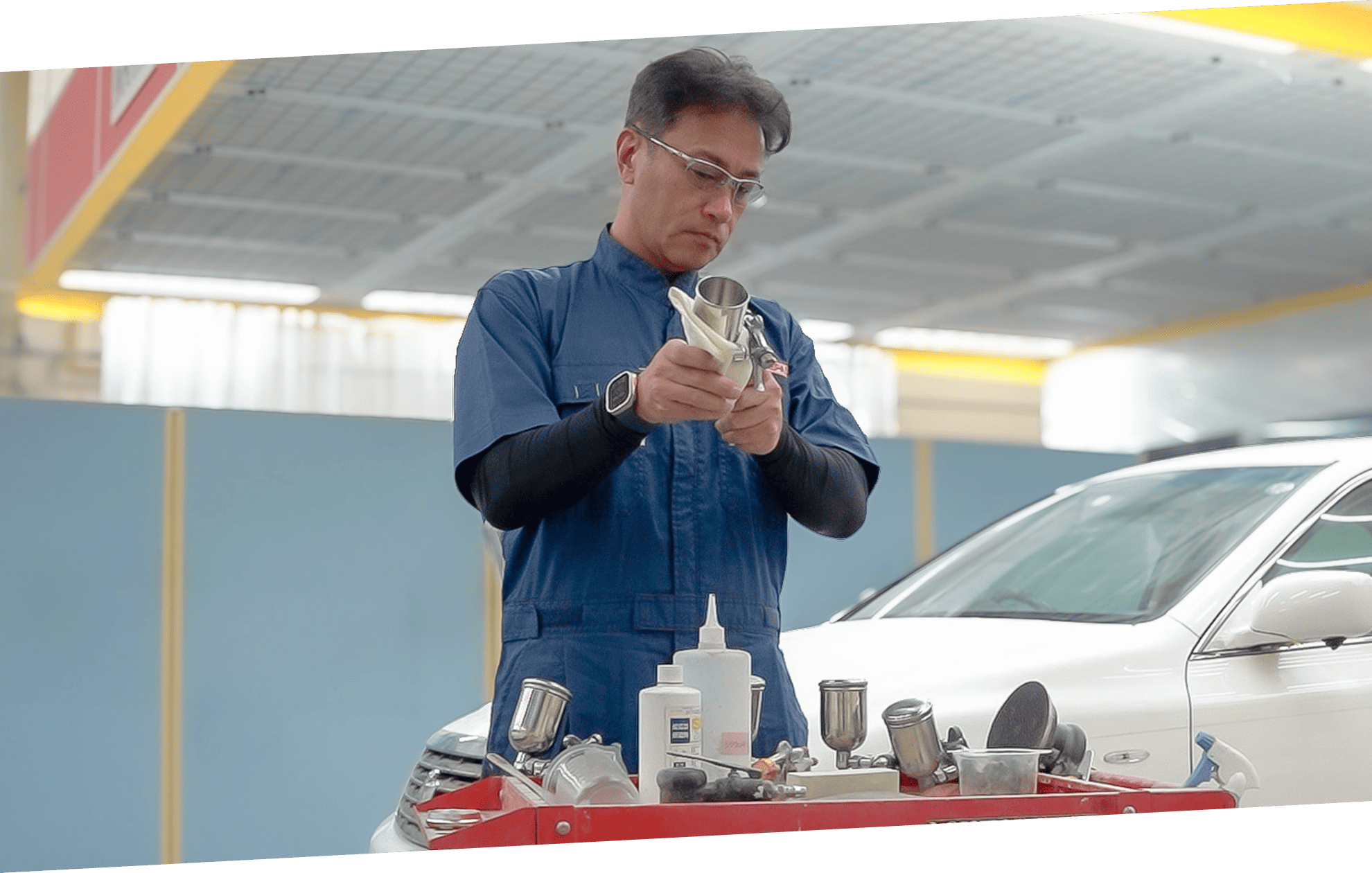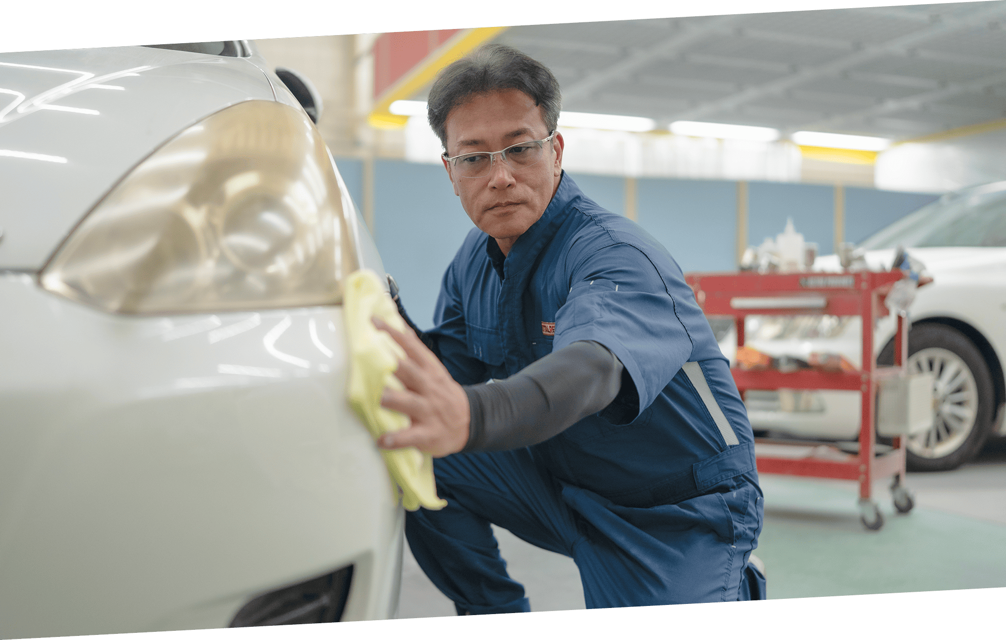 バンパーやフェンダー、ドアなど自動車外装に生じた傷をクイックに修復し、お客様への納車をスムーズにするお手伝いをさせていただきます。水性補修塗料を主に使用するため、安全面に配慮した施工を実現。出張での施工を可能にしました。そのため一般的な板金修理よりも大幅に納期と価格を抑えながら、お車を綺麗にさせていただきます。