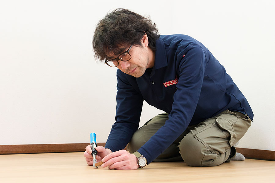 その中でも当店は住宅のフローリングや階段、家具などの木部についた傷やアルミ・樹脂サッシなどの傷を補修し、元の風合いを再現して住まいの問題を解決いたします。