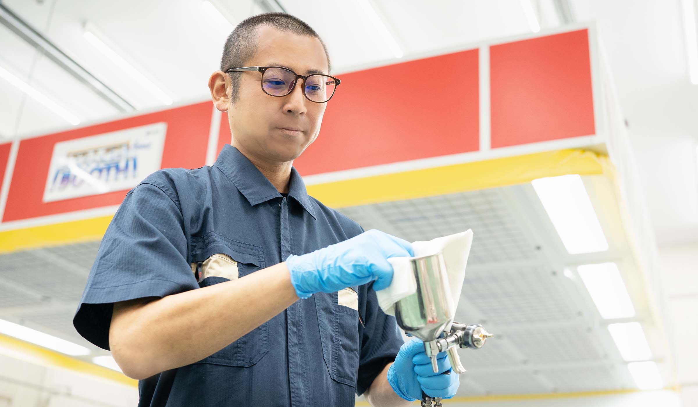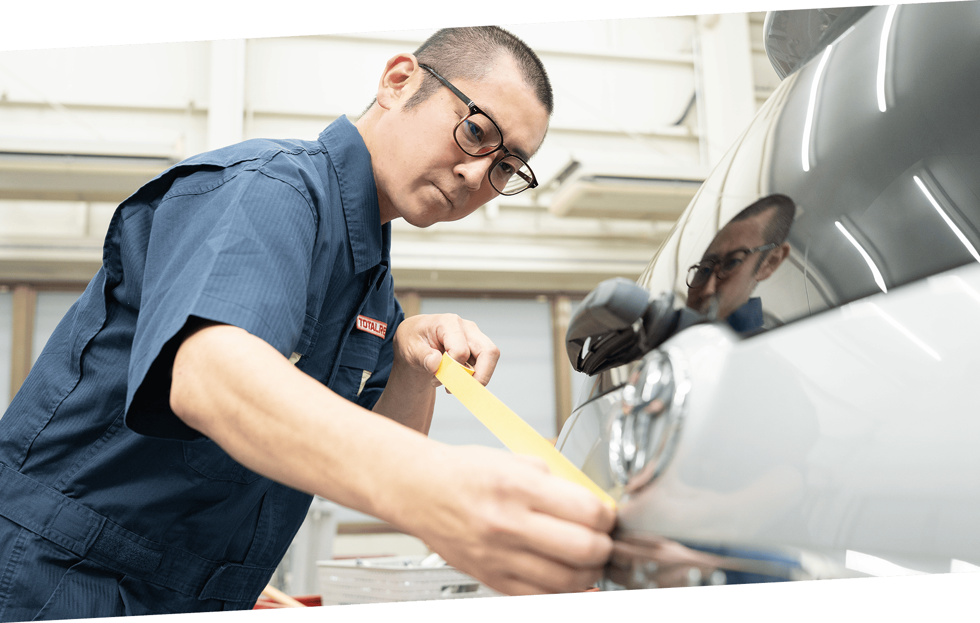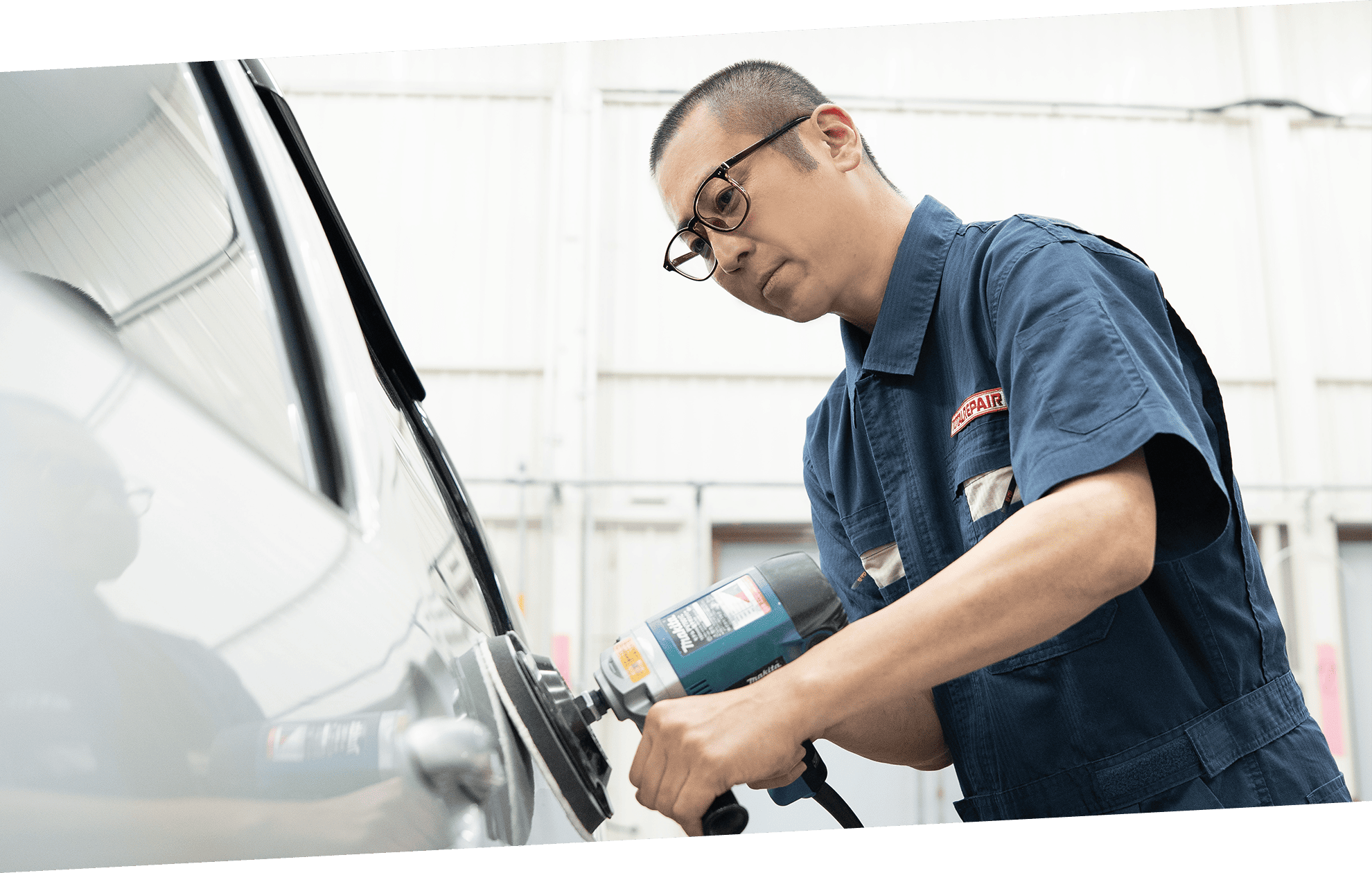 バンパーやフェンダー、ドアなど自動車外装に生じた傷をクイックに修復し、お客様への納車をスムーズにするお手伝いをさせていただきます。水性補修塗料を主に使用するため、安全面に配慮した施工を実現。出張での施工を可能にしました。そのため一般的な板金修理よりも大幅に納期と価格を抑えながら、お車を綺麗にさせていただきます。