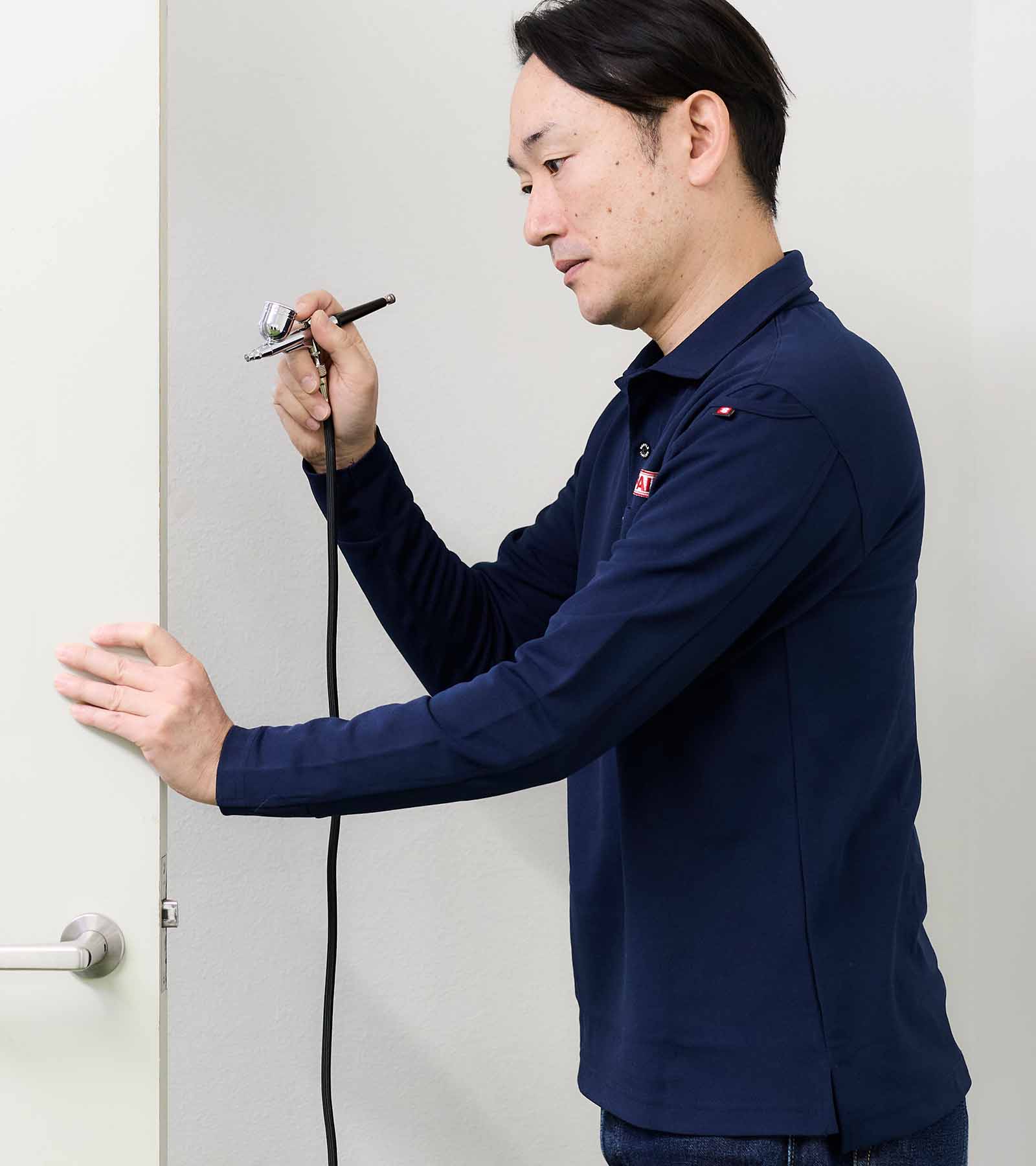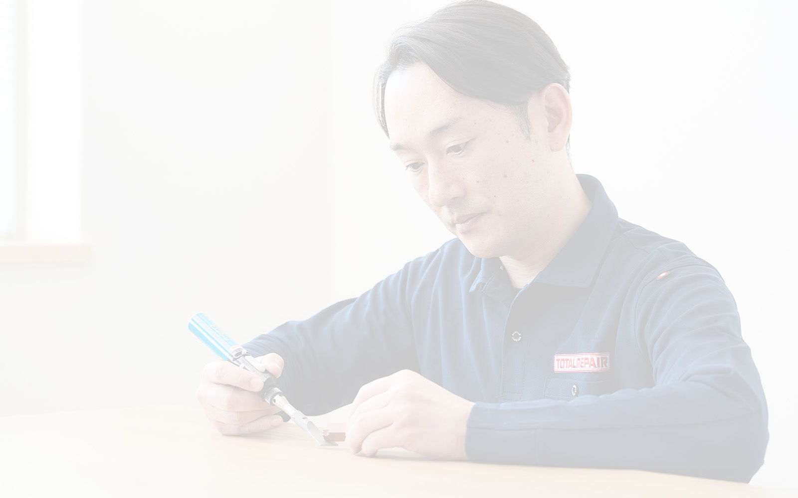 トータルリペアは、自動車や住宅をはじめ、家具、革製品などの傷や劣化を修復するサービスを全国規模で展開しています。当店は、1,000店舗以上ある加盟店の一つとして、特に住宅関連のリペアに特化しております。