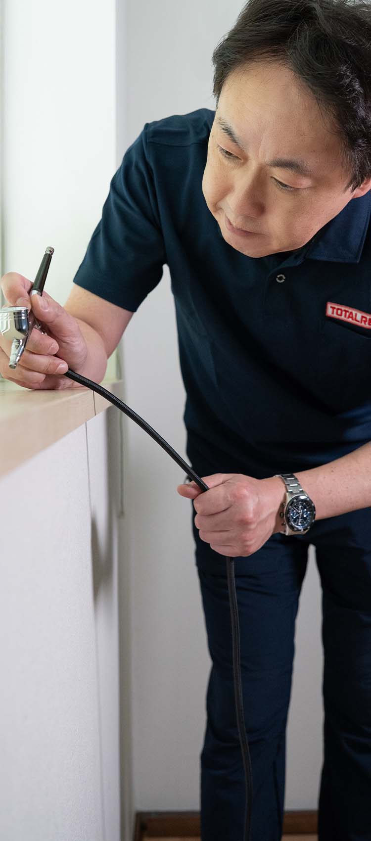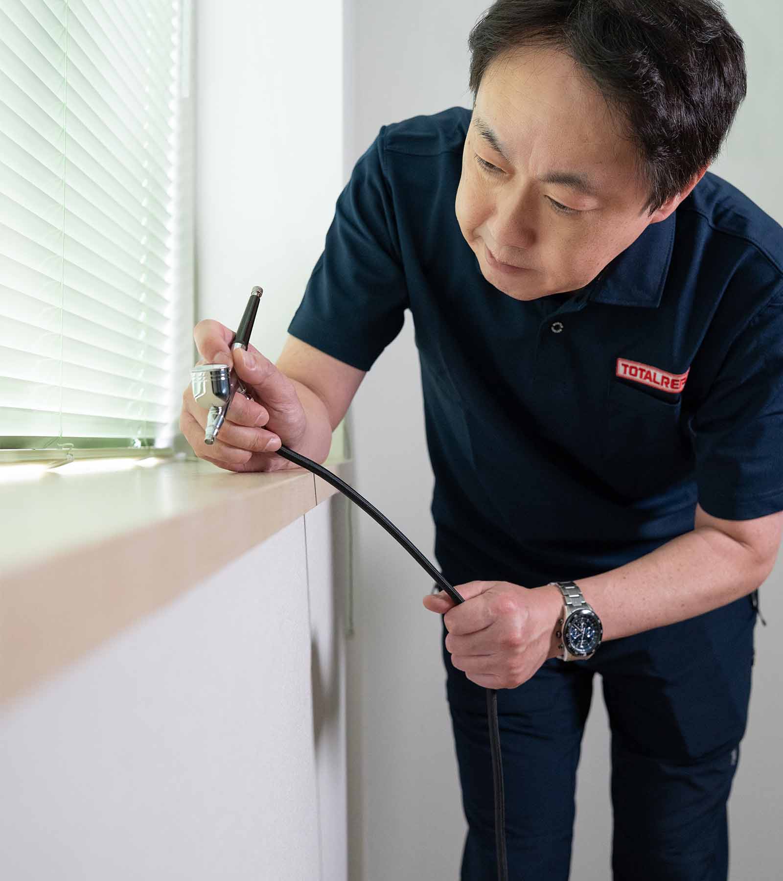 トータルリペアは、自動車や住宅をはじめ、家具、革製品などの傷や劣化を修復するサービスを全国規模で展開しています。当店は、1,000店舗以上ある加盟店の一つとして、特に住宅関連のリペアに特化しております。