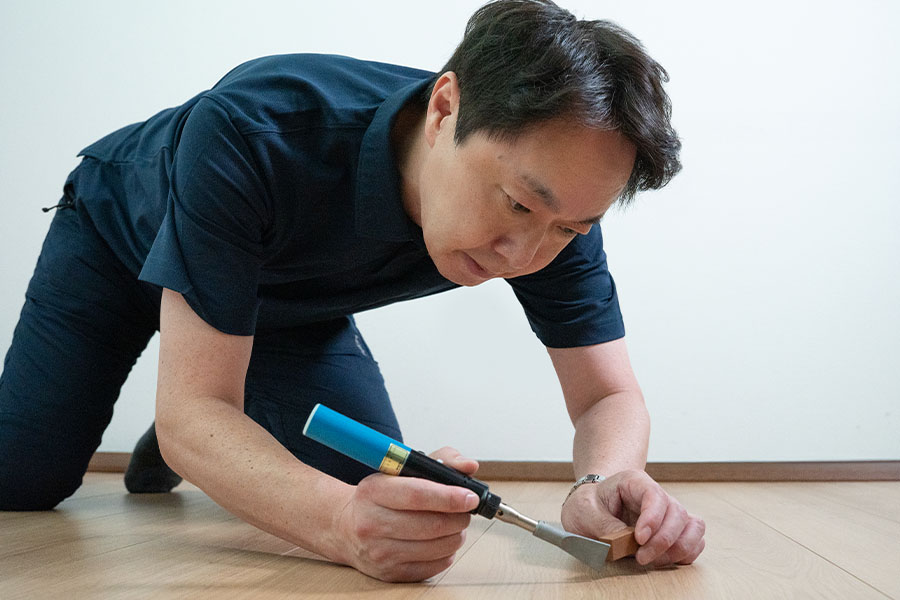 その中でも当店は住宅のフローリングや階段、家具などの木部についた傷やアルミ・樹脂サッシなどの傷を補修し、元の風合いを再現して住まいの問題を解決いたします。