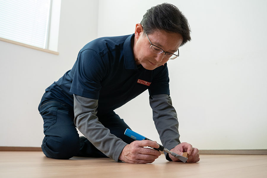 その中でも当店は住宅のフローリングや階段、家具などの木部についた傷やアルミ・樹脂サッシなどの傷を補修し、元の風合いを再現して住まいの問題を解決いたします。