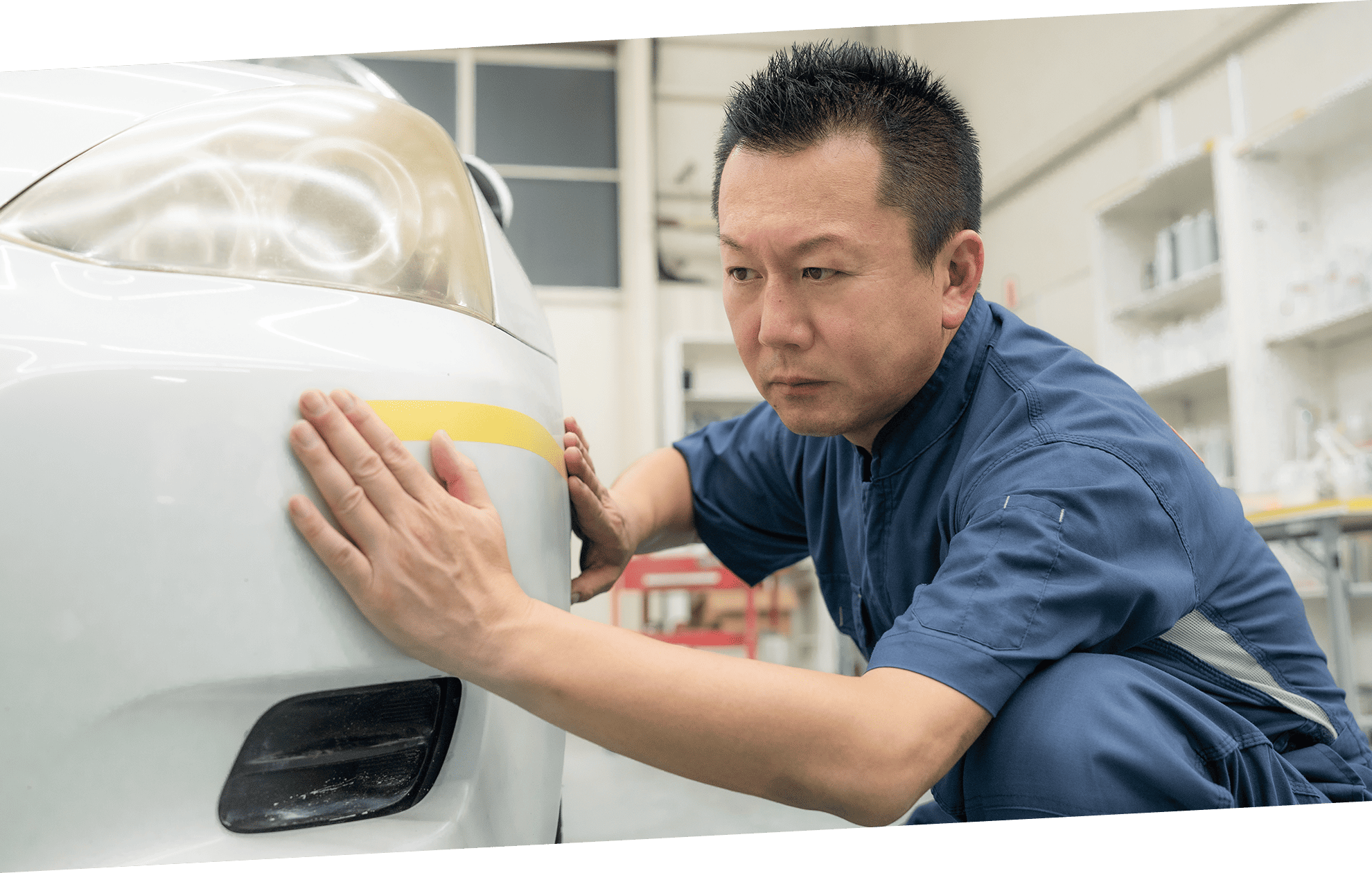 バンパーやフェンダー、ドアなど自動車外装に生じた傷をクイックに修復し、お客様への納車をスムーズにするお手伝いをさせていただきます。水性補修塗料を主に使用するため、安全面に配慮した施工を実現。出張での施工を可能にしました。そのため一般的な板金修理よりも大幅に納期と価格を抑えながら、お車を綺麗にさせていただきます。