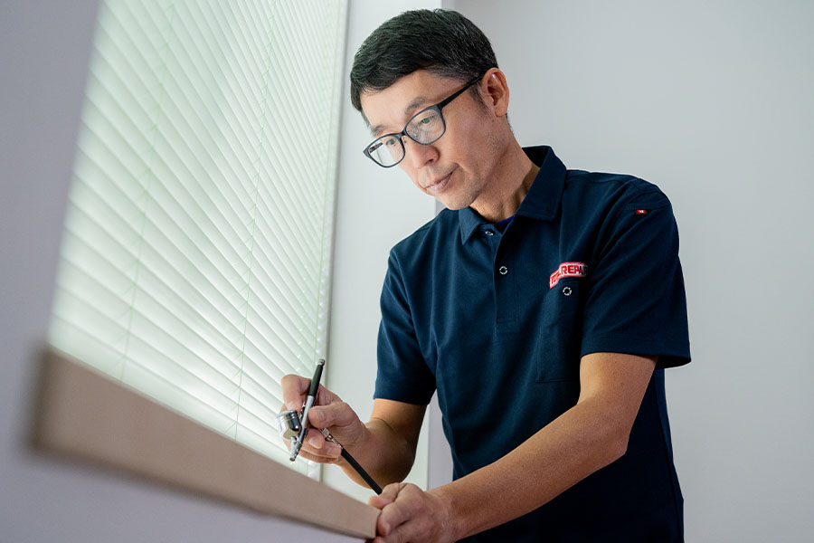 その中でも当店は住宅のフローリングや階段、家具などの木部についた傷やアルミ・樹脂サッシなどの傷を補修し、元の風合いを再現して住まいの問題を解決いたします。