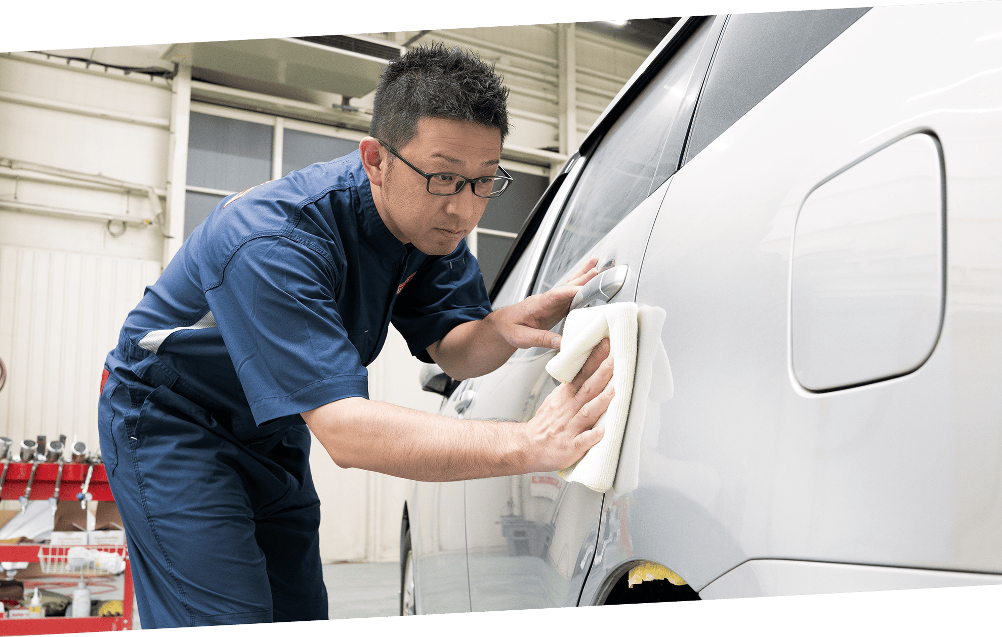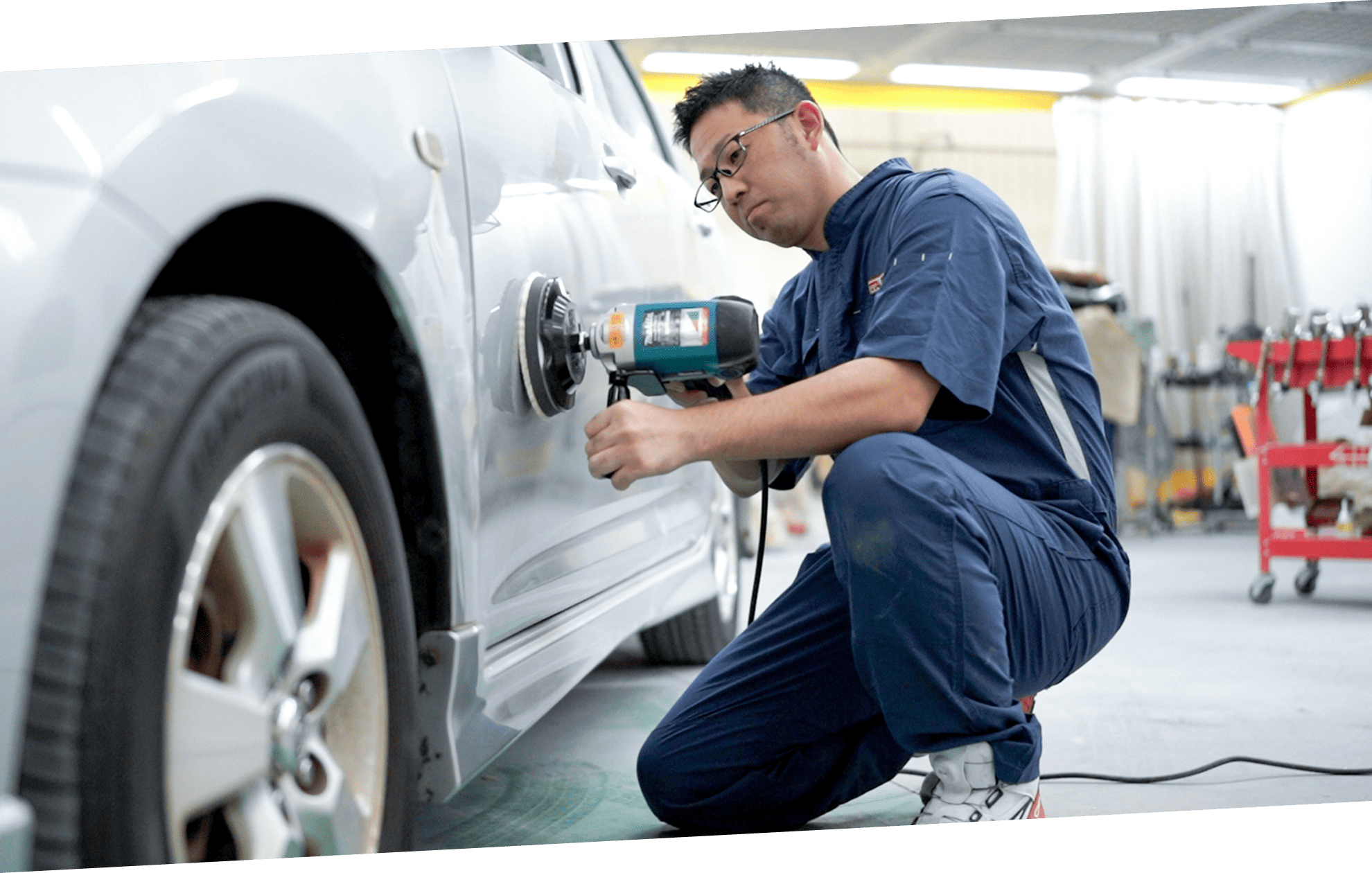 バンパーやフェンダー、ドアなど自動車外装に生じた傷をクイックに修復し、お客様への納車をスムーズにするお手伝いをさせていただきます。水性補修塗料を主に使用するため、安全面に配慮した施工を実現。出張での施工を可能にしました。そのため一般的な板金修理よりも大幅に納期と価格を抑えながら、お車を綺麗にさせていただきます。