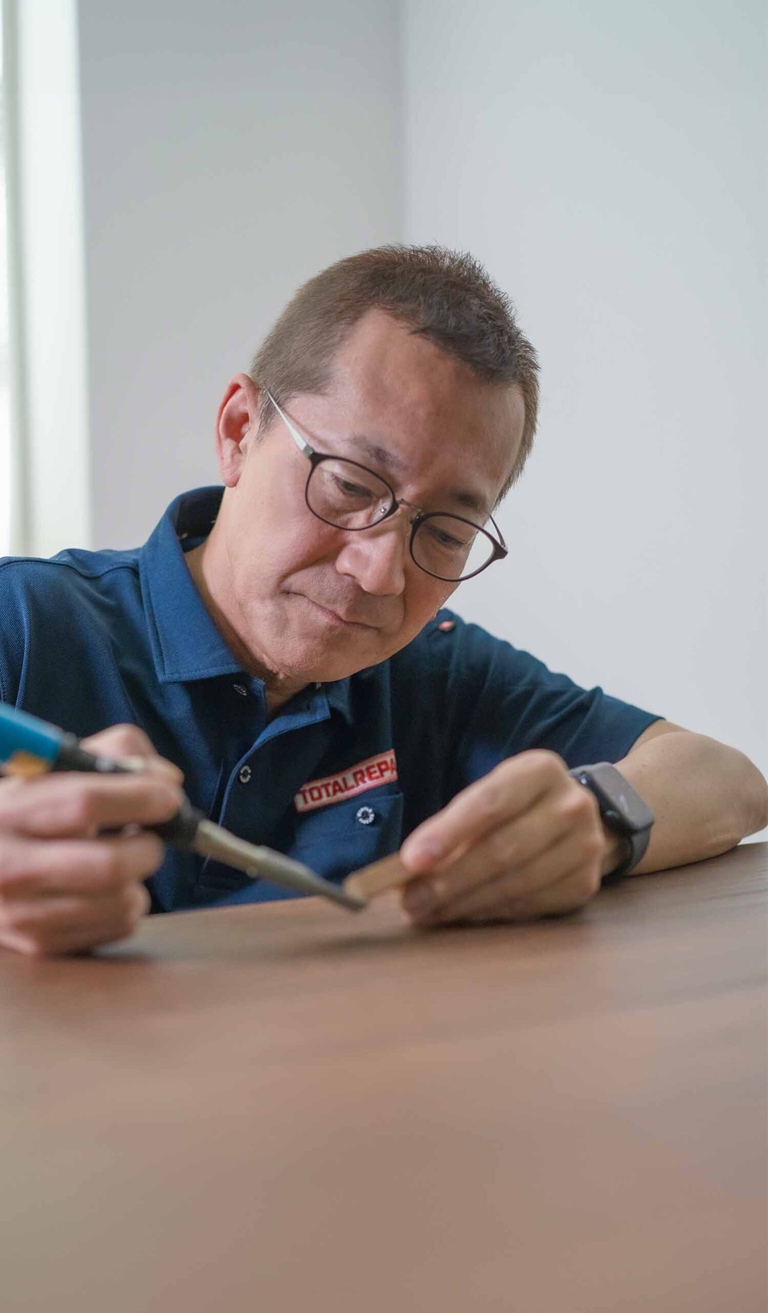 トータルリペアは、自動車や住宅をはじめ、家具、革製品などの傷や劣化を修復するサービスを全国規模で展開しています。当店は、1,000店舗以上ある加盟店の一つとして、特に住宅関連のリペアに特化しております。