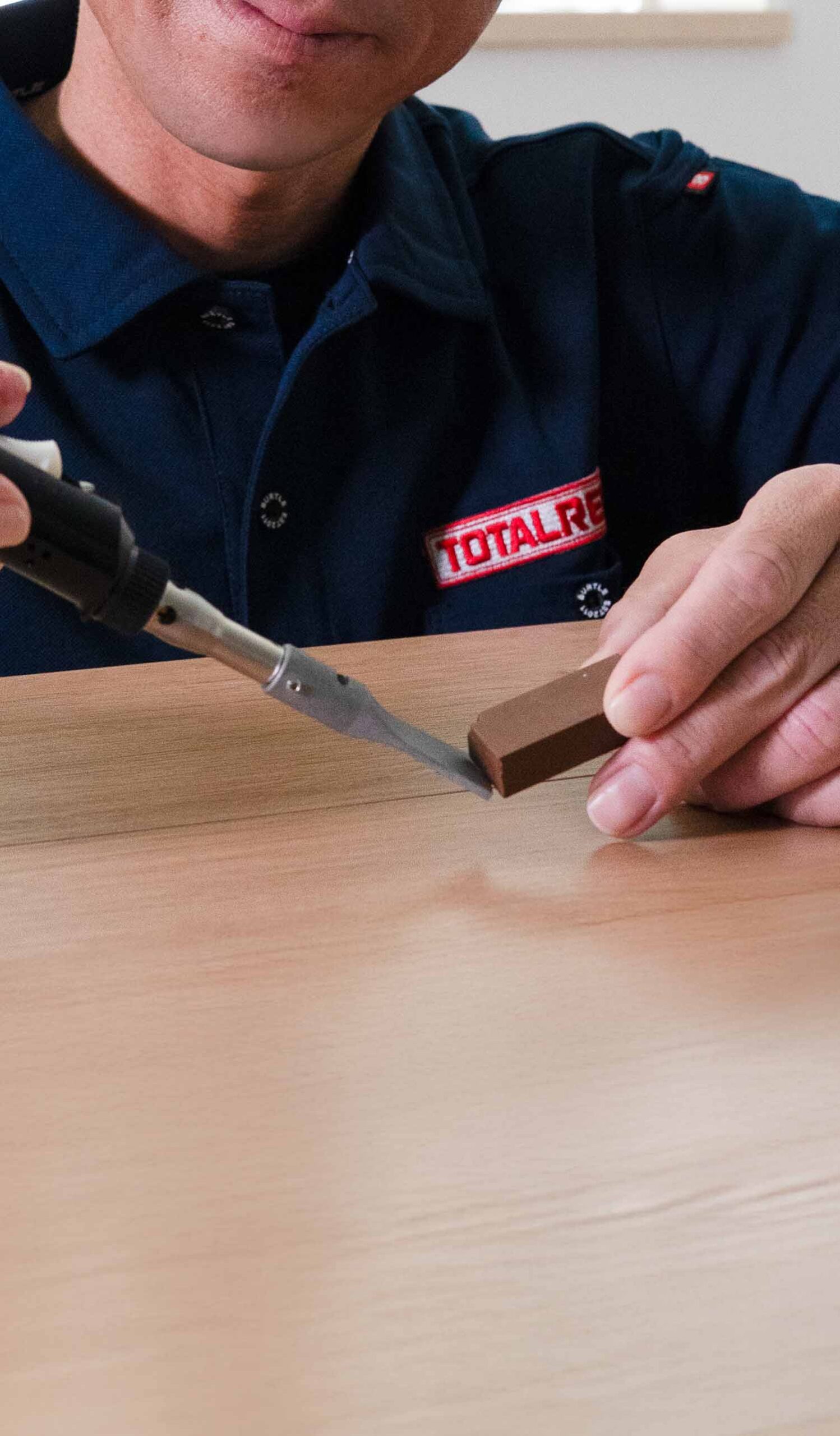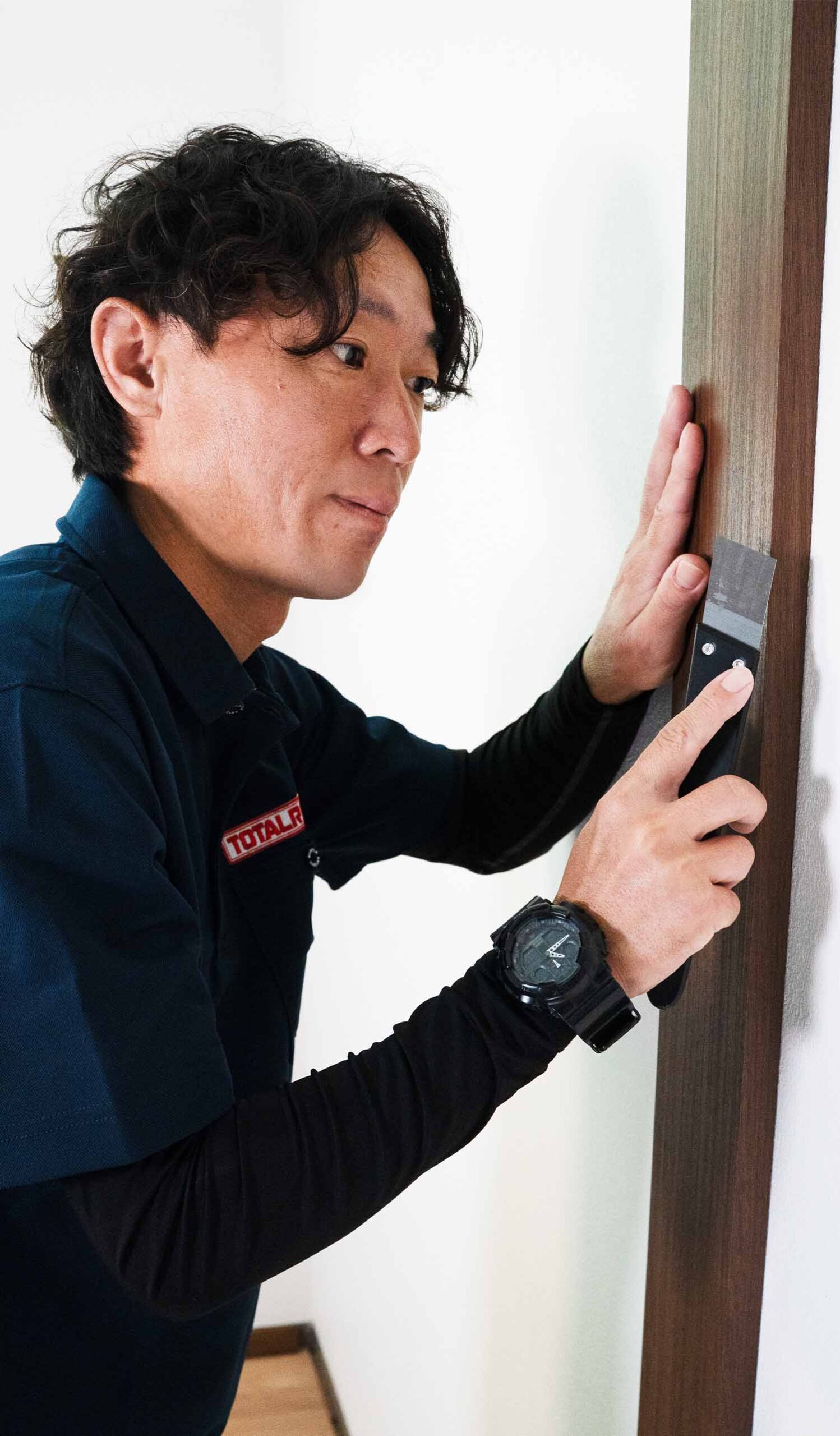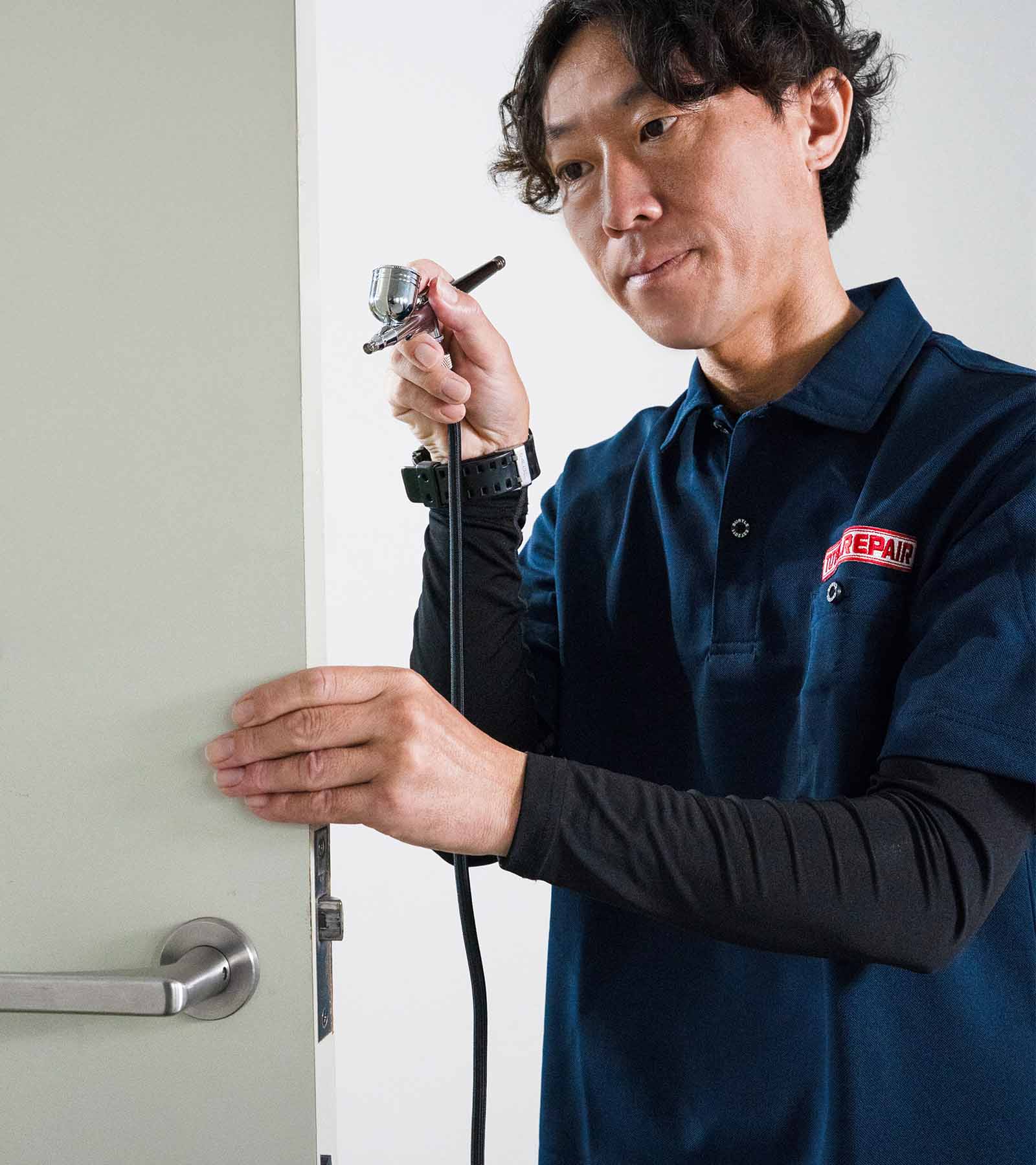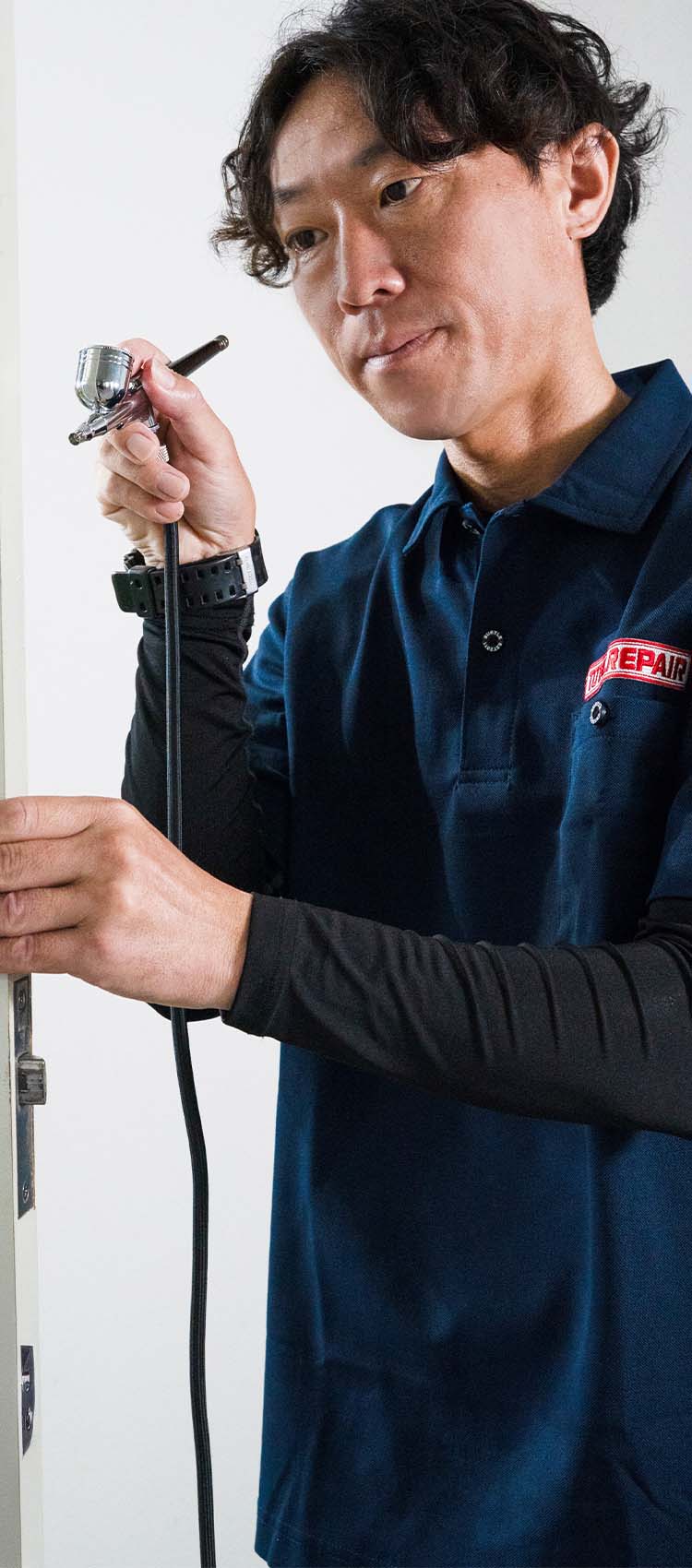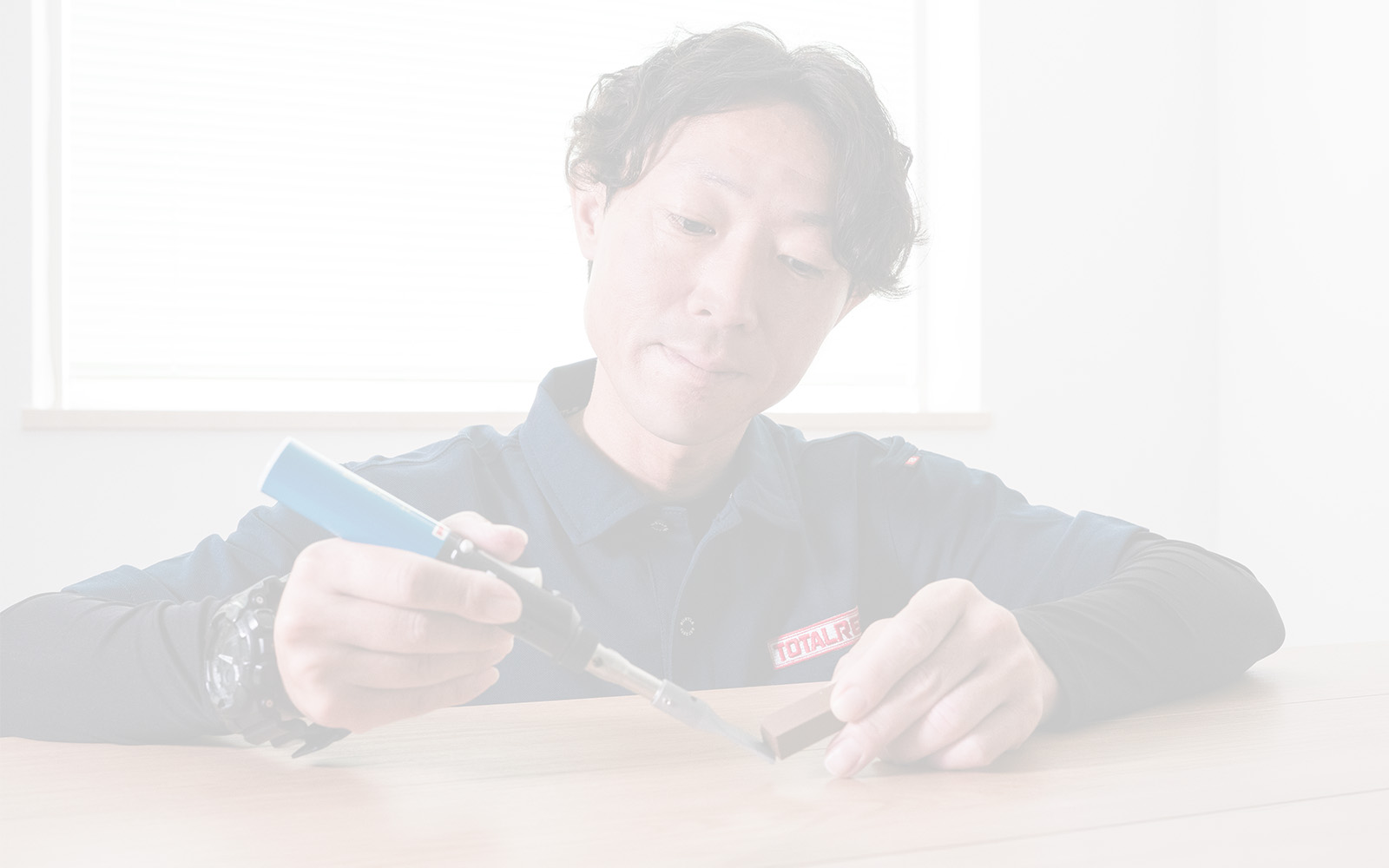 トータルリペアは、自動車や住宅をはじめ、家具、革製品などの傷や劣化を修復するサービスを全国規模で展開しています。当店は、1,000店舗以上ある加盟店の一つとして、特に住宅関連のリペアに特化しております。