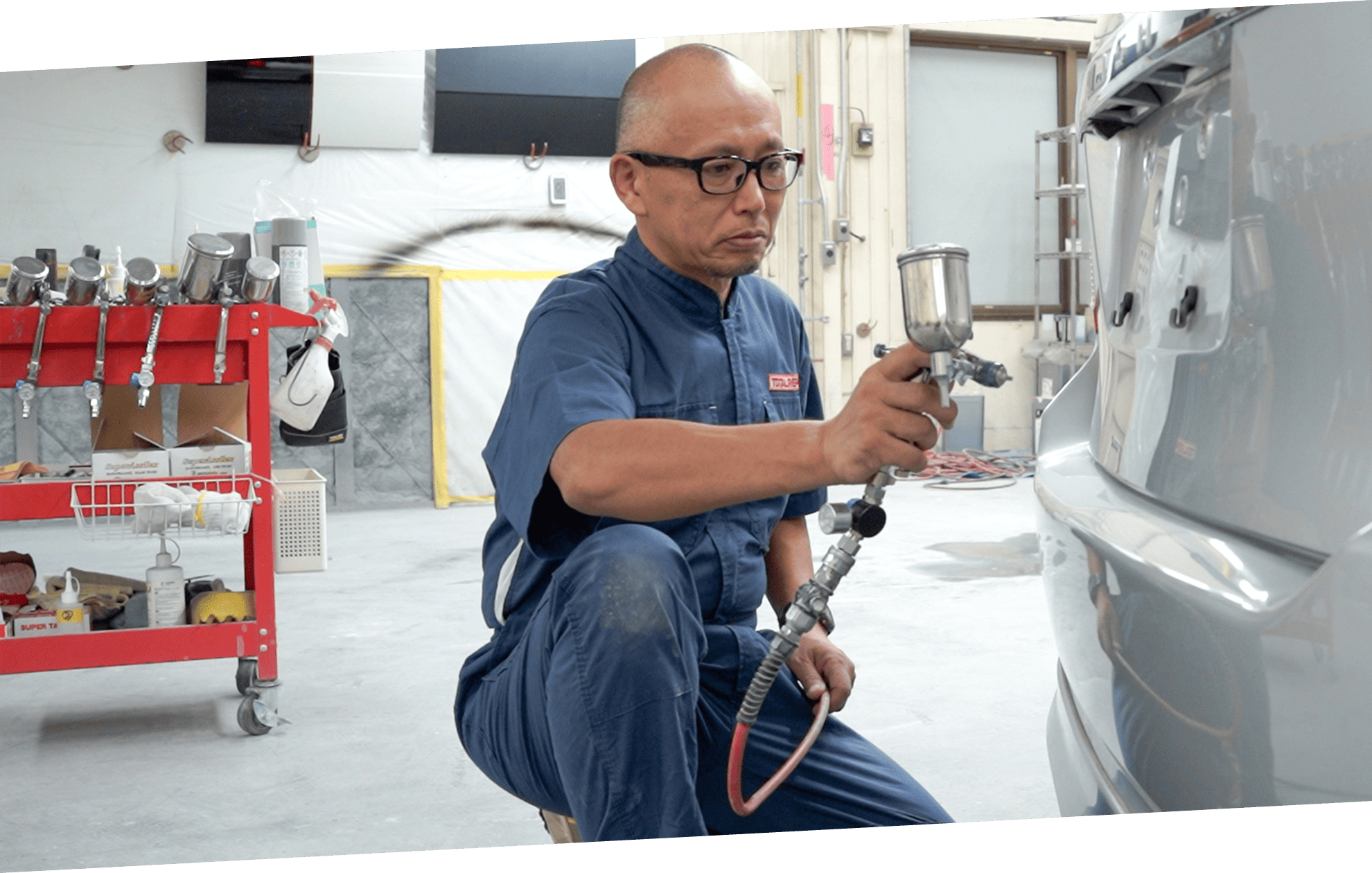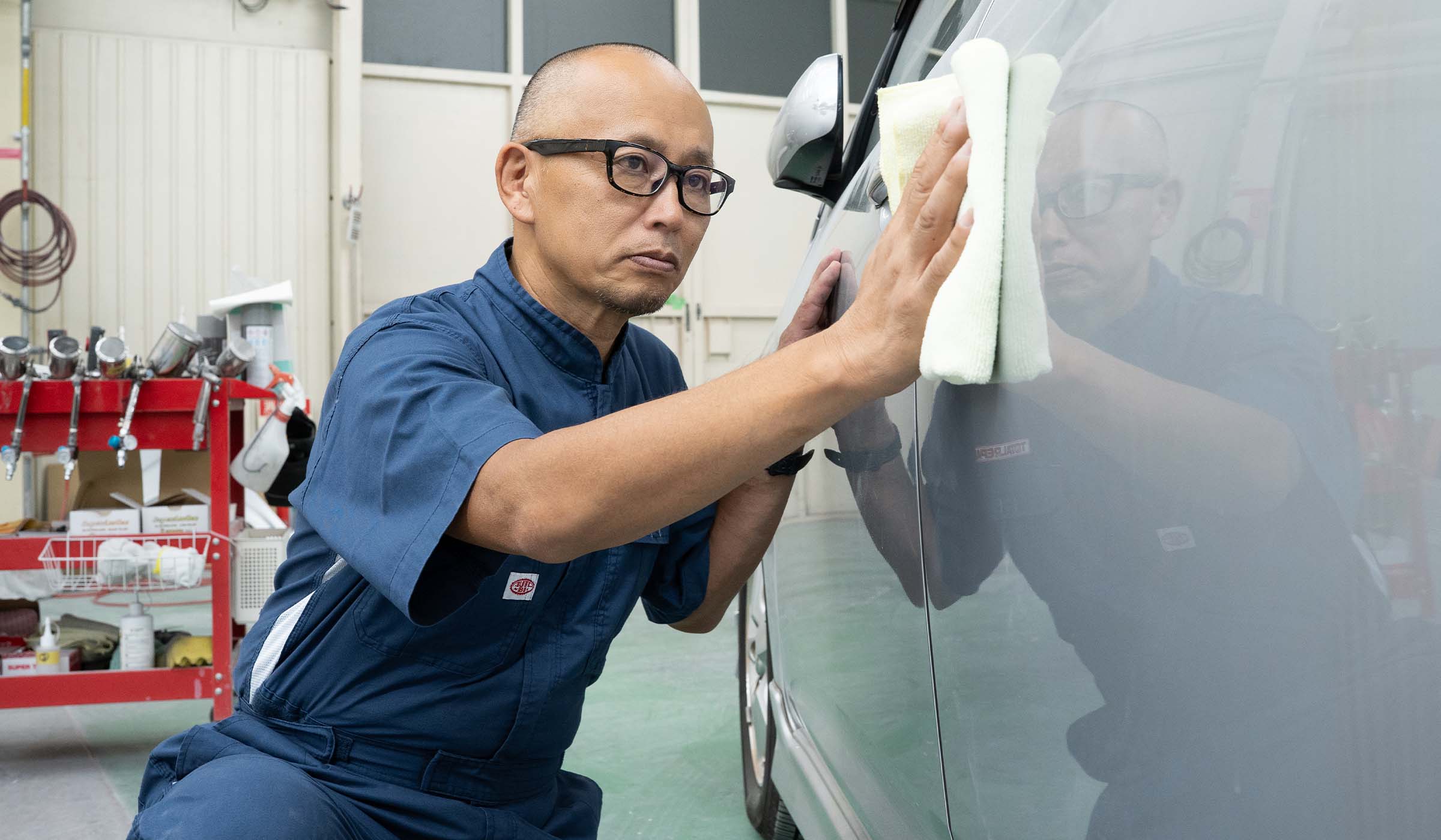 バンパーやフェンダー、ドアなど自動車外装に生じた傷をクイックに修復し、お客様への納車をスムーズにするお手伝いをさせていただきます。水性補修塗料を主に使用するため、安全面に配慮した施工を実現。出張での施工を可能にしました。そのため一般的な板金修理よりも大幅に納期と価格を抑えながら、お車を綺麗にさせていただきます。