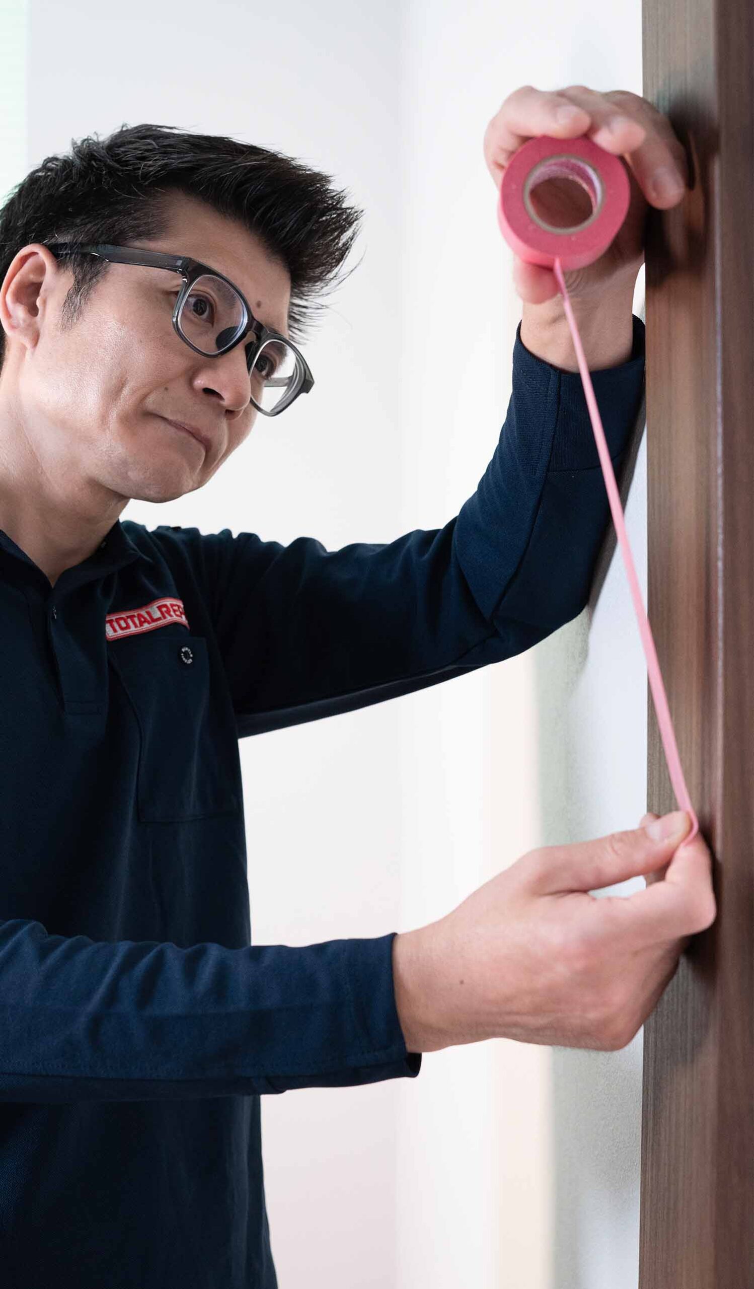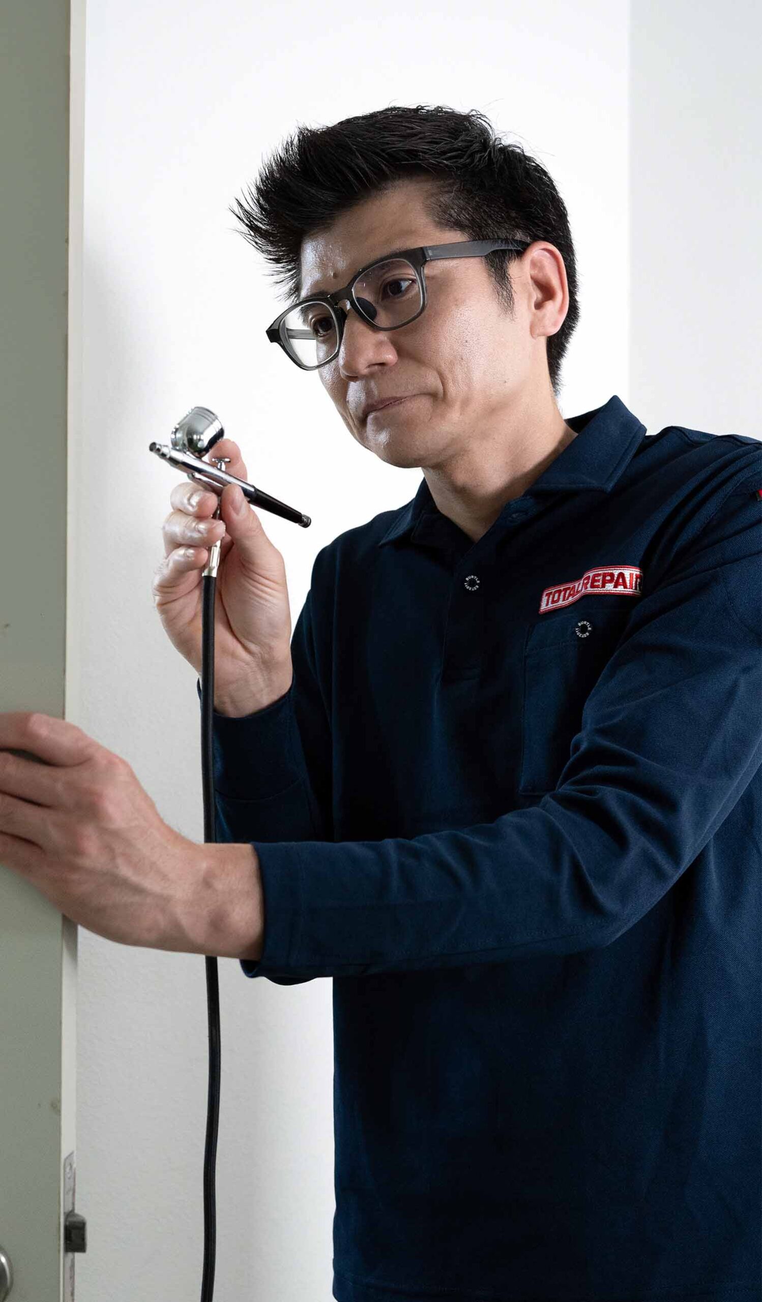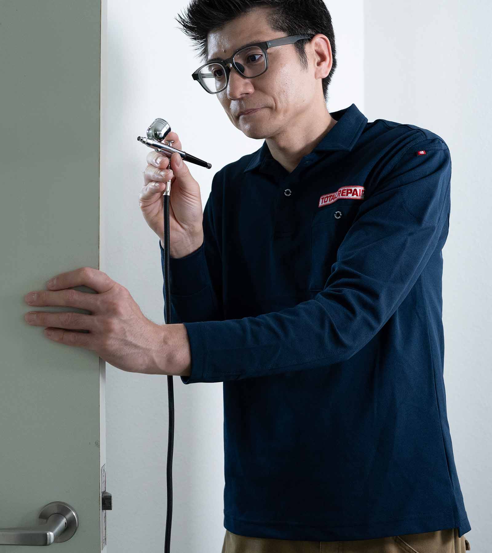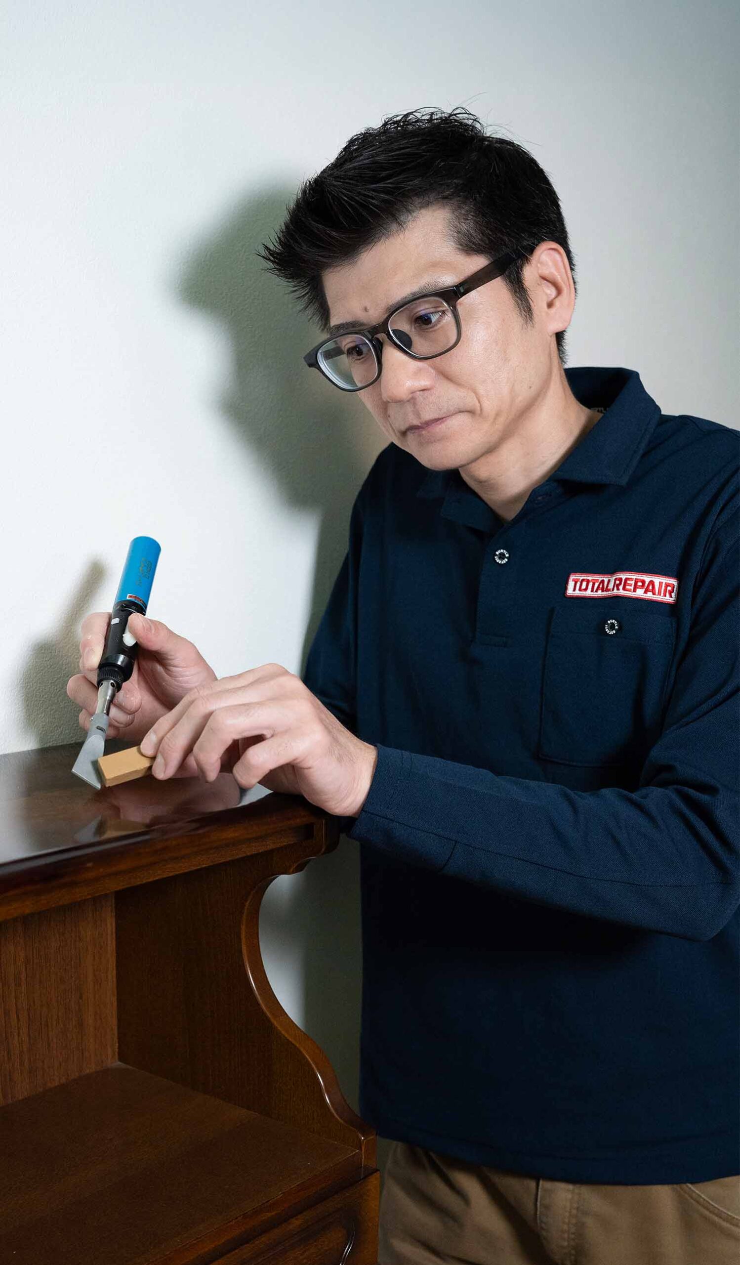 トータルリペアは、自動車や住宅をはじめ、家具、革製品などの傷や劣化を修復するサービスを全国規模で展開しています。当店は、1,000店舗以上ある加盟店の一つとして、特に住宅関連のリペアに特化しております。