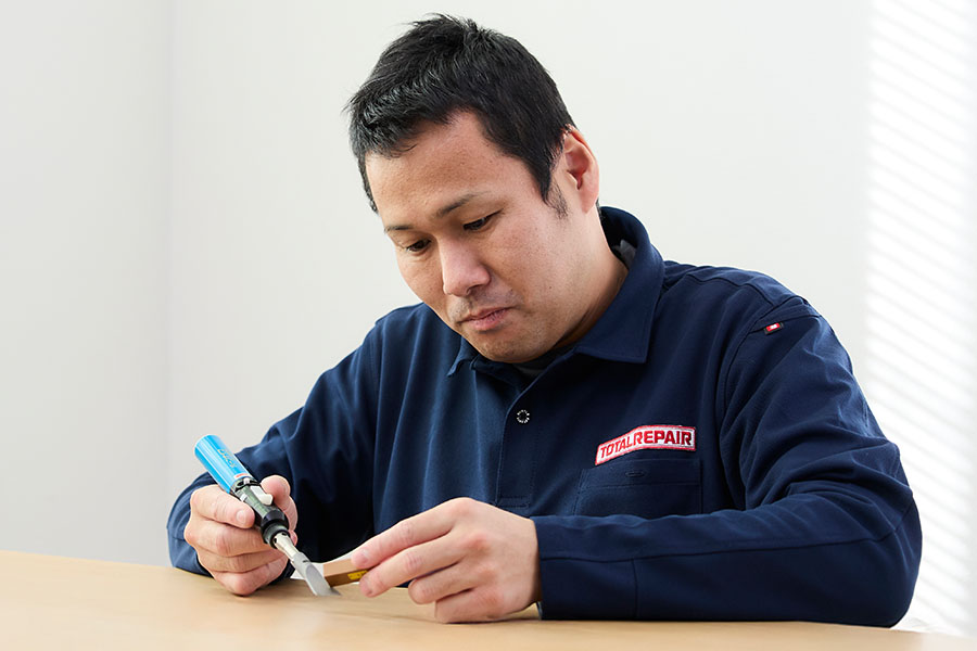 その中でも当店は住宅のフローリングや階段、家具などの木部についた傷やアルミ・樹脂サッシなどの傷を補修し、元の風合いを再現して住まいの問題を解決いたします。