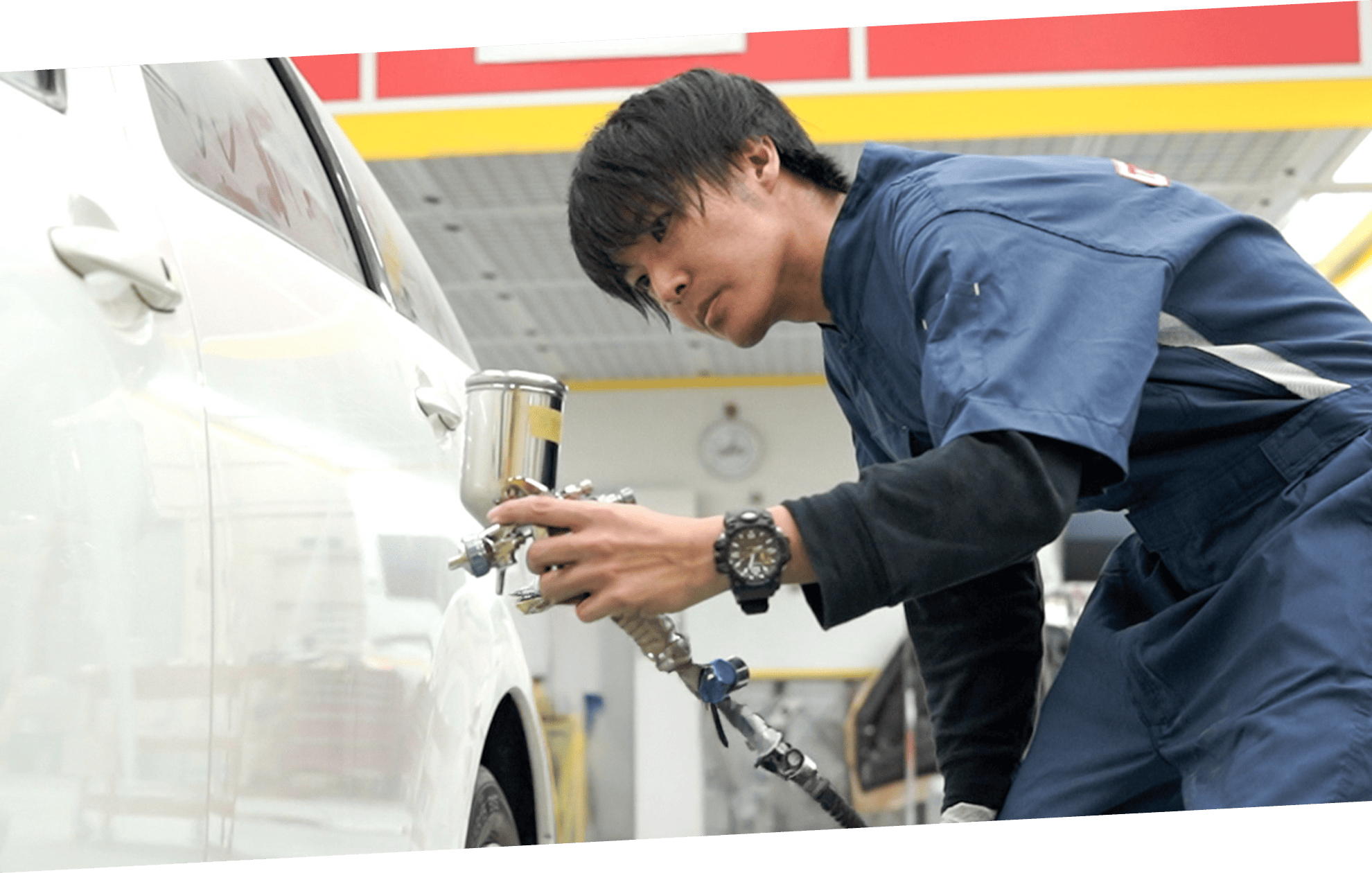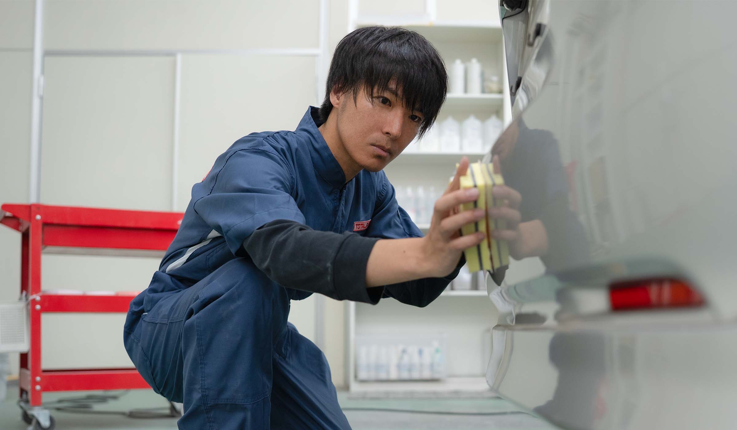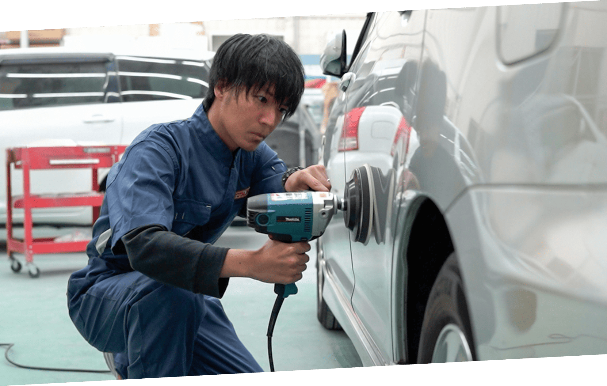 バンパーやフェンダー、ドアなど自動車外装に生じた傷をクイックに修復し、お客様への納車をスムーズにするお手伝いをさせていただきます。水性補修塗料を主に使用するため、安全面に配慮した施工を実現。出張での施工を可能にしました。そのため一般的な板金修理よりも大幅に納期と価格を抑えながら、お車を綺麗にさせていただきます。