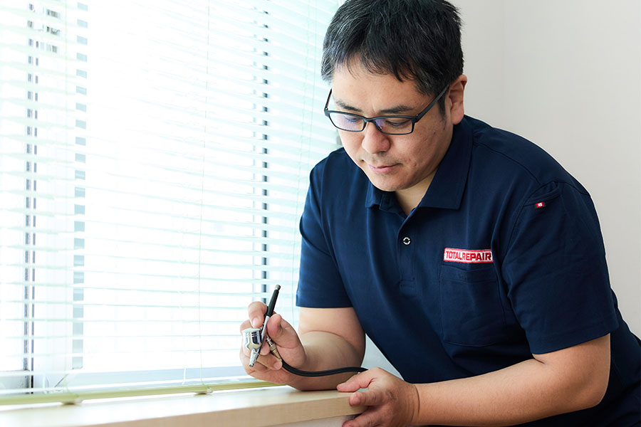 その中でも当店は住宅のフローリングや階段、家具などの木部についた傷やアルミ・樹脂サッシなどの傷を補修し、元の風合いを再現して住まいの問題を解決いたします。