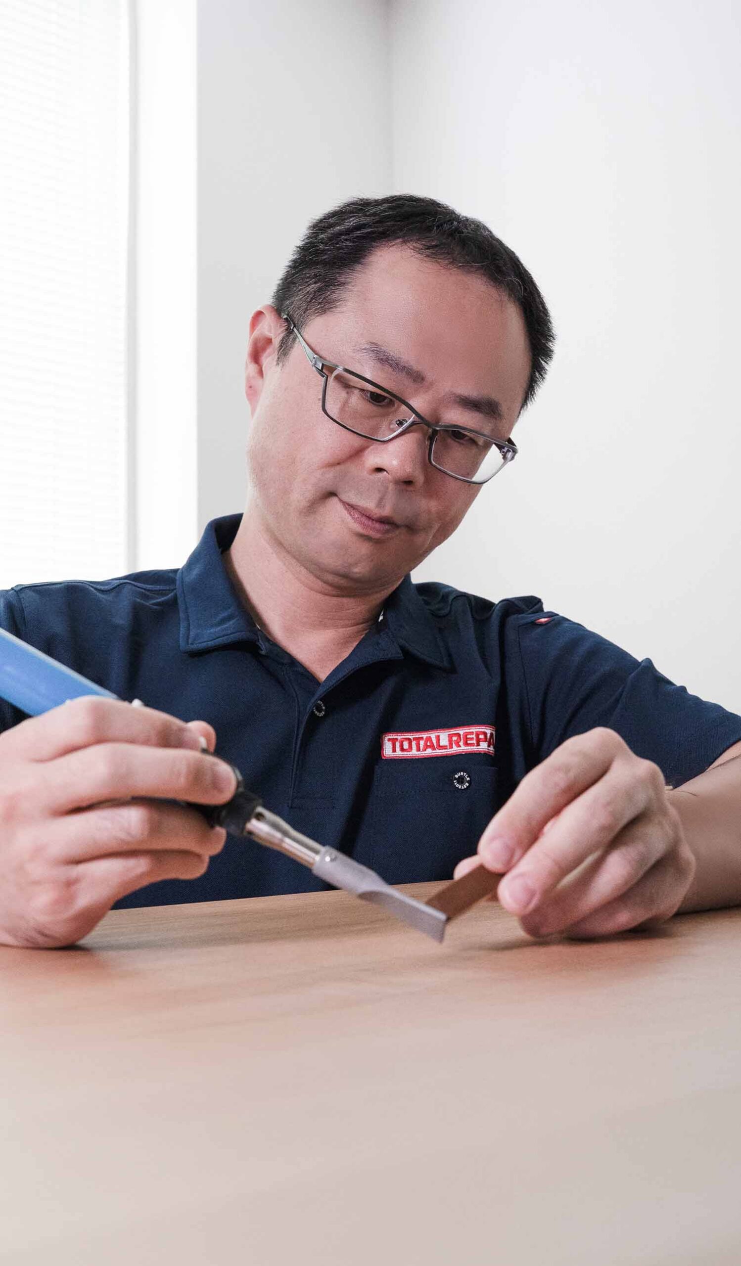 トータルリペアは、自動車や住宅をはじめ、家具、革製品などの傷や劣化を修復するサービスを全国規模で展開しています。当店は、1,000店舗以上ある加盟店の一つとして、特に住宅関連のリペアに特化しております。