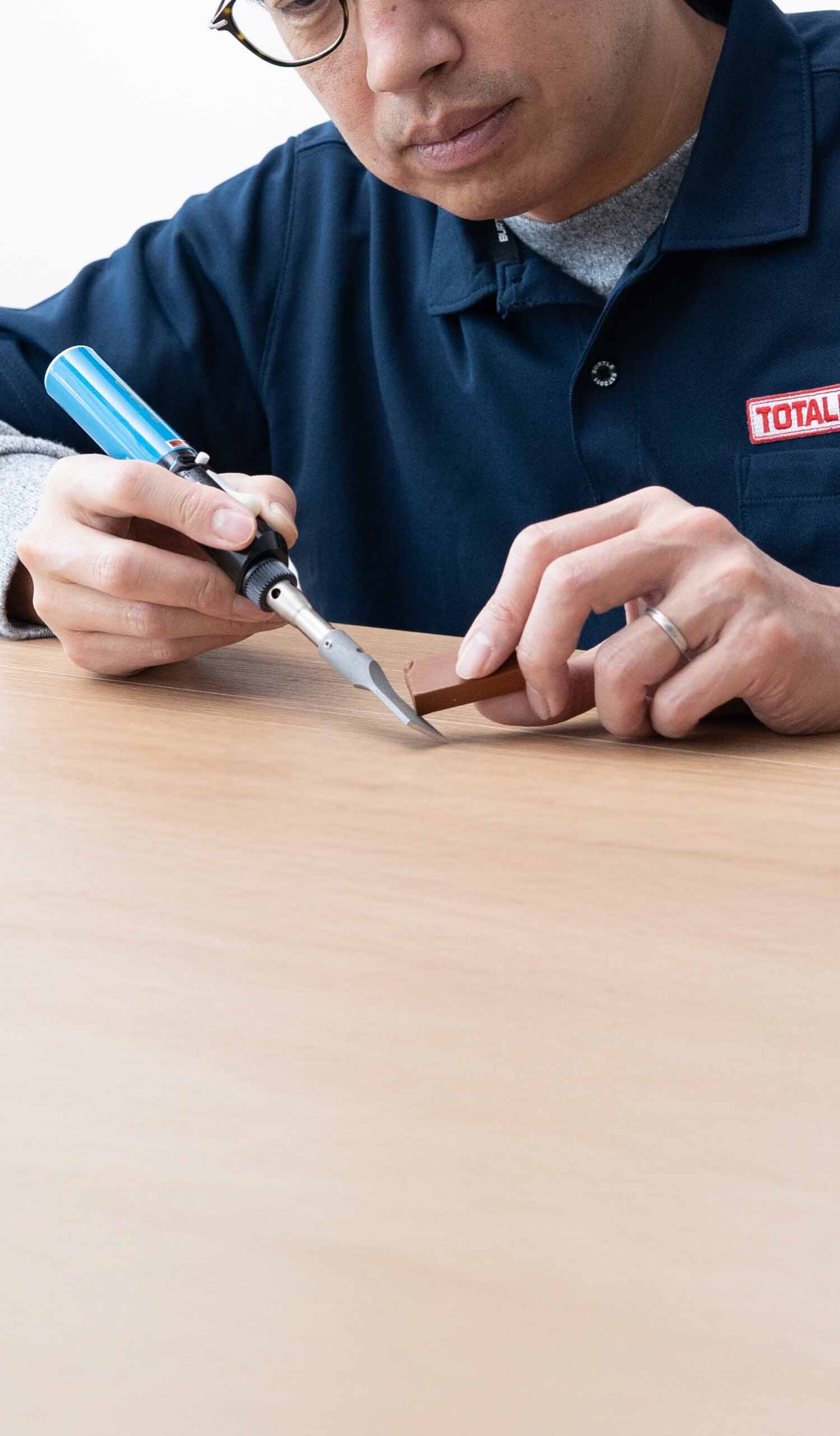 トータルリペアは、自動車や住宅をはじめ、家具、革製品などの傷や劣化を修復するサービスを全国規模で展開しています。当店は、1,000店舗以上ある加盟店の一つとして、特に住宅関連のリペアに特化しております。