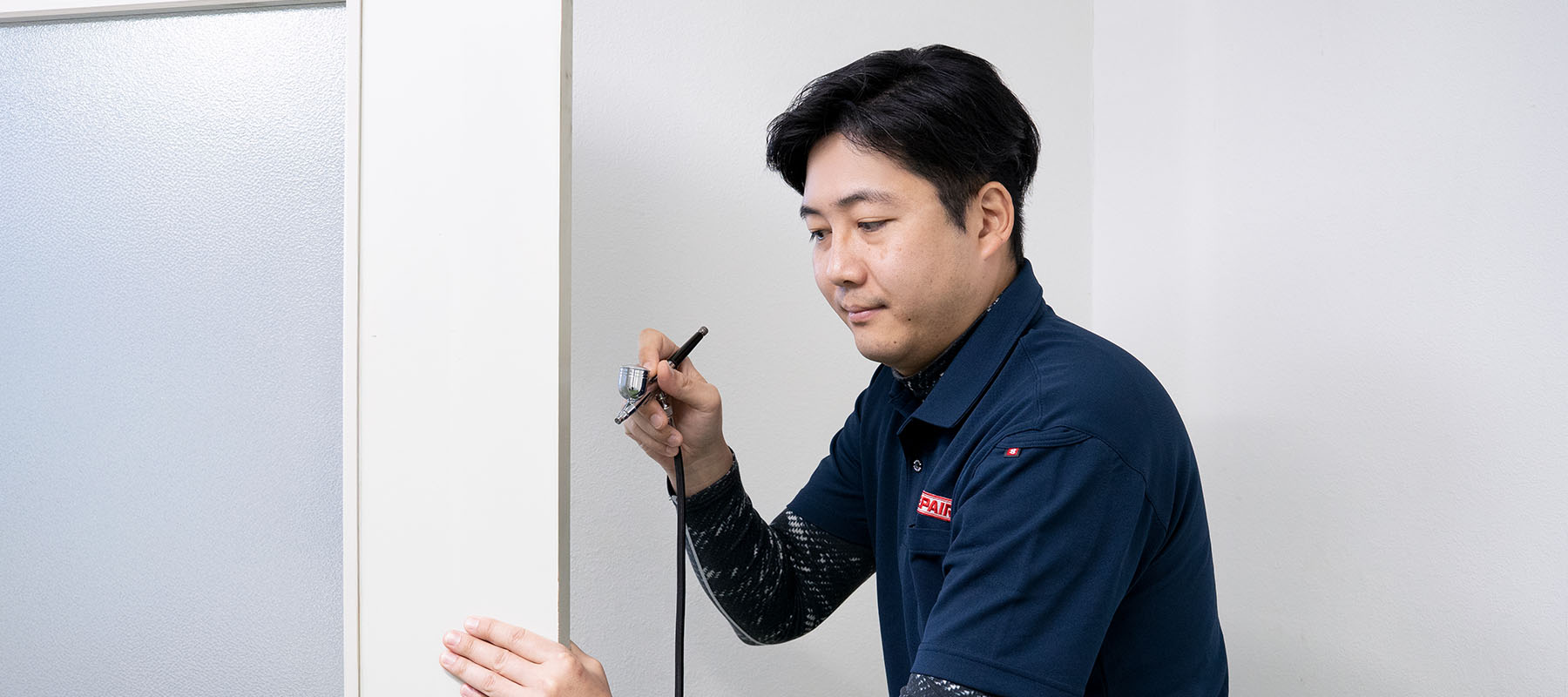 トータルリペアは、自動車や住宅をはじめ、家具、革製品などの傷や劣化を修復するサービスを全国規模で展開しています。当店は、1,000店舗以上ある加盟店の一つとして、特に住宅関連のリペアに特化しております。