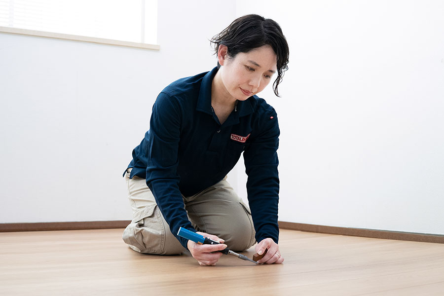 その中でも当店は住宅のフローリングや階段、家具などの木部についた傷やアルミ・樹脂サッシなどの傷を補修し、元の風合いを再現して住まいの問題を解決いたします。