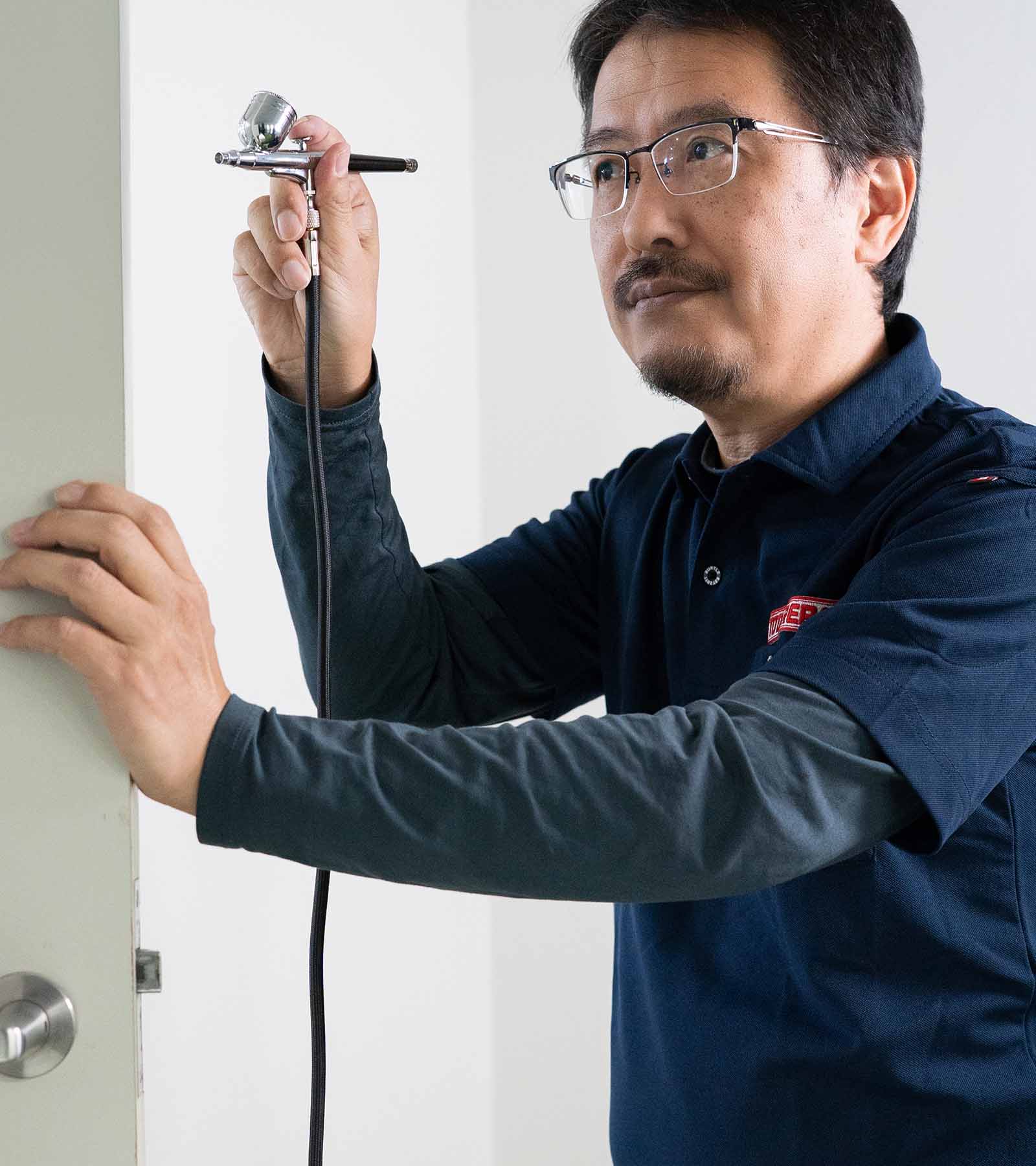 住宅のフローリングや階段、そして家具の木製部品に生じた傷、またアルミ製や樹脂製のサッシの損傷を専門的に修復、お客様の大切な住空間の美観を回復し、問題を解消いたします。ハウスメーカー、建築業者、不動産管理会社からの信頼を受け、新築から中古まで様々な物件に対応しております。