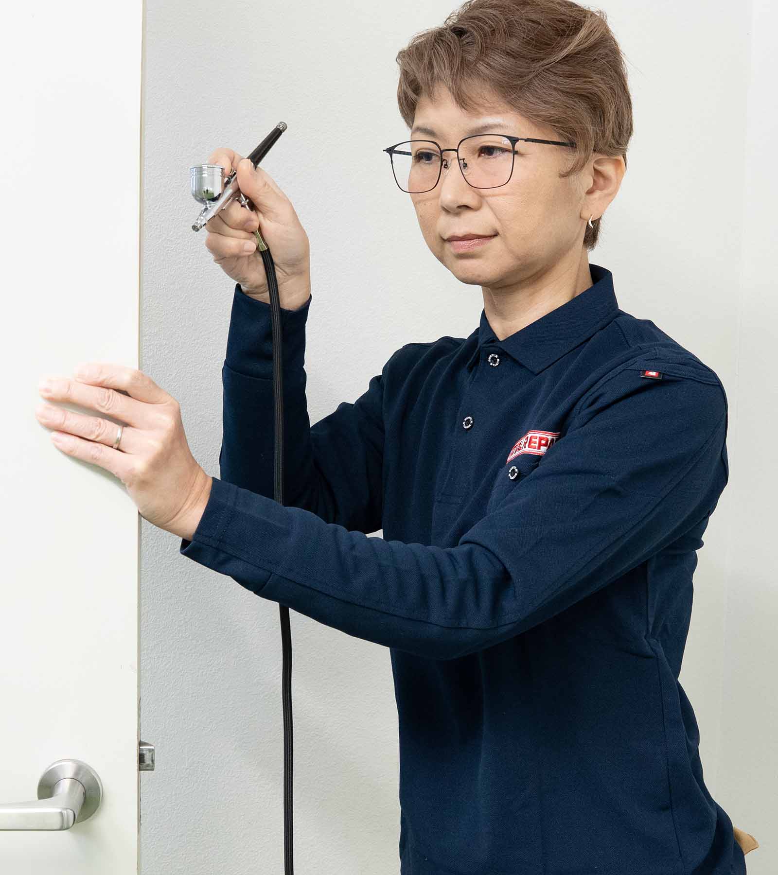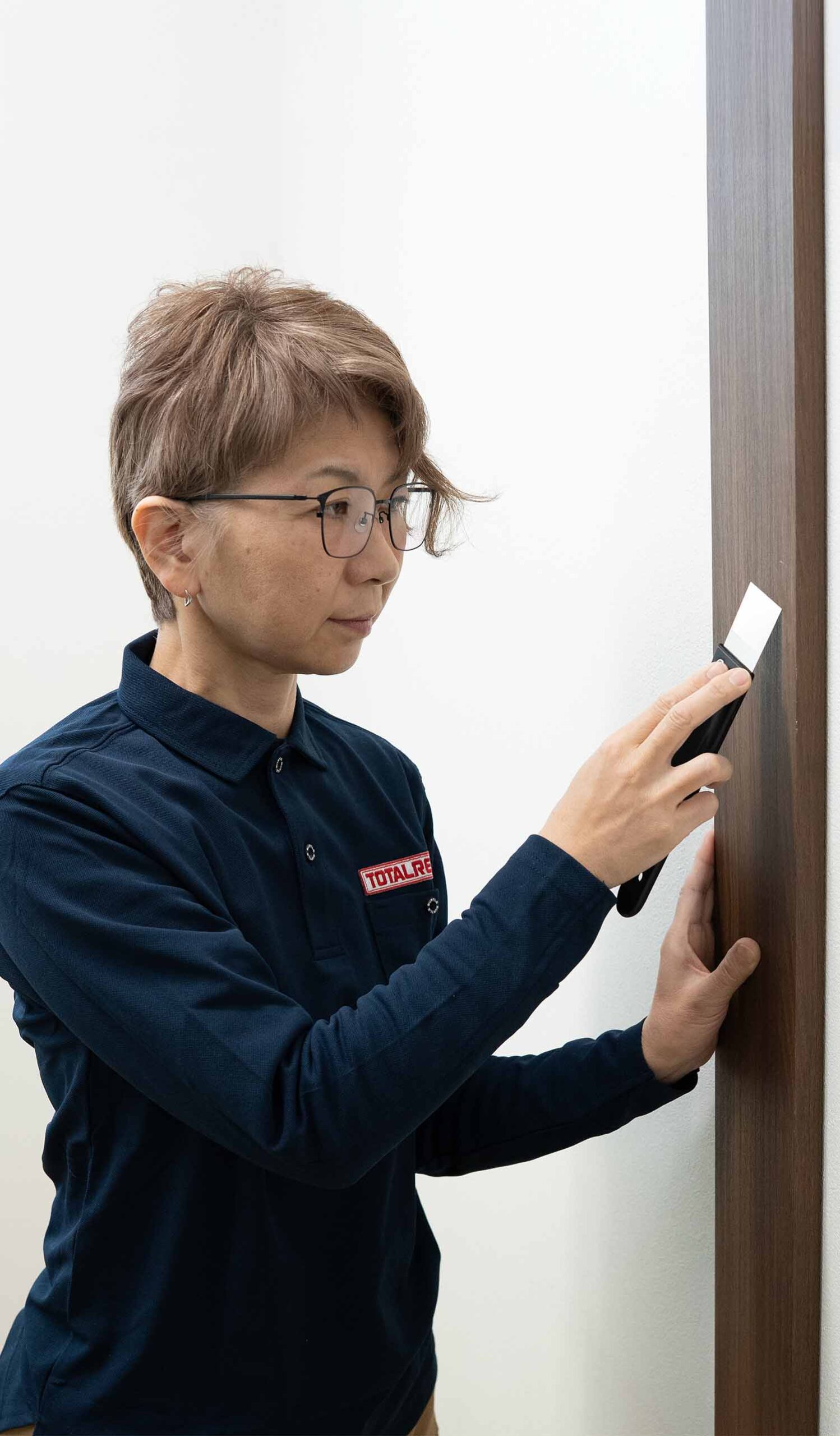 トータルリペアは、自動車や住宅をはじめ、家具、革製品などの傷や劣化を修復するサービスを全国規模で展開しています。当店は、1,000店舗以上ある加盟店の一つとして、特に住宅関連のリペアに特化しております。