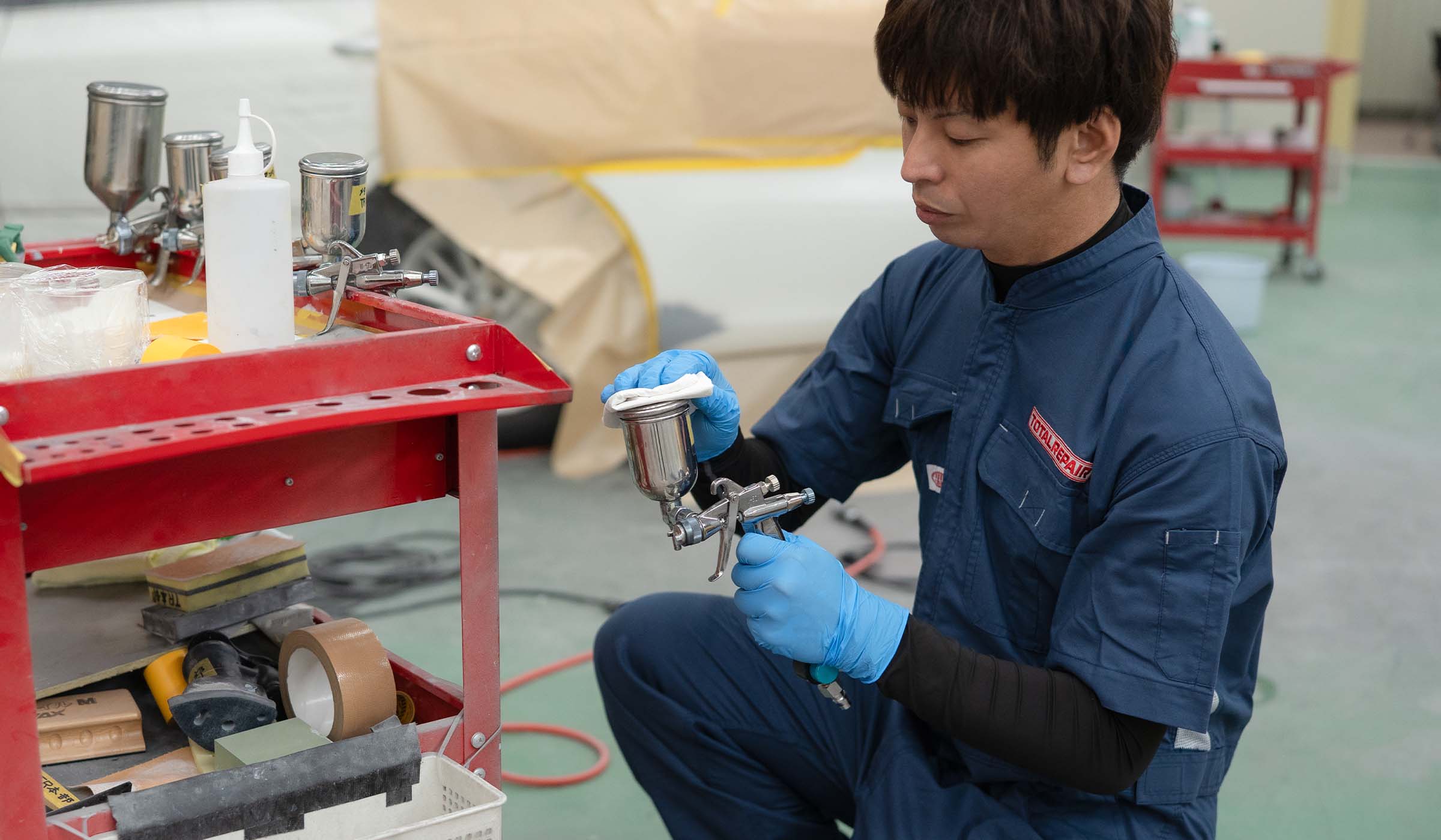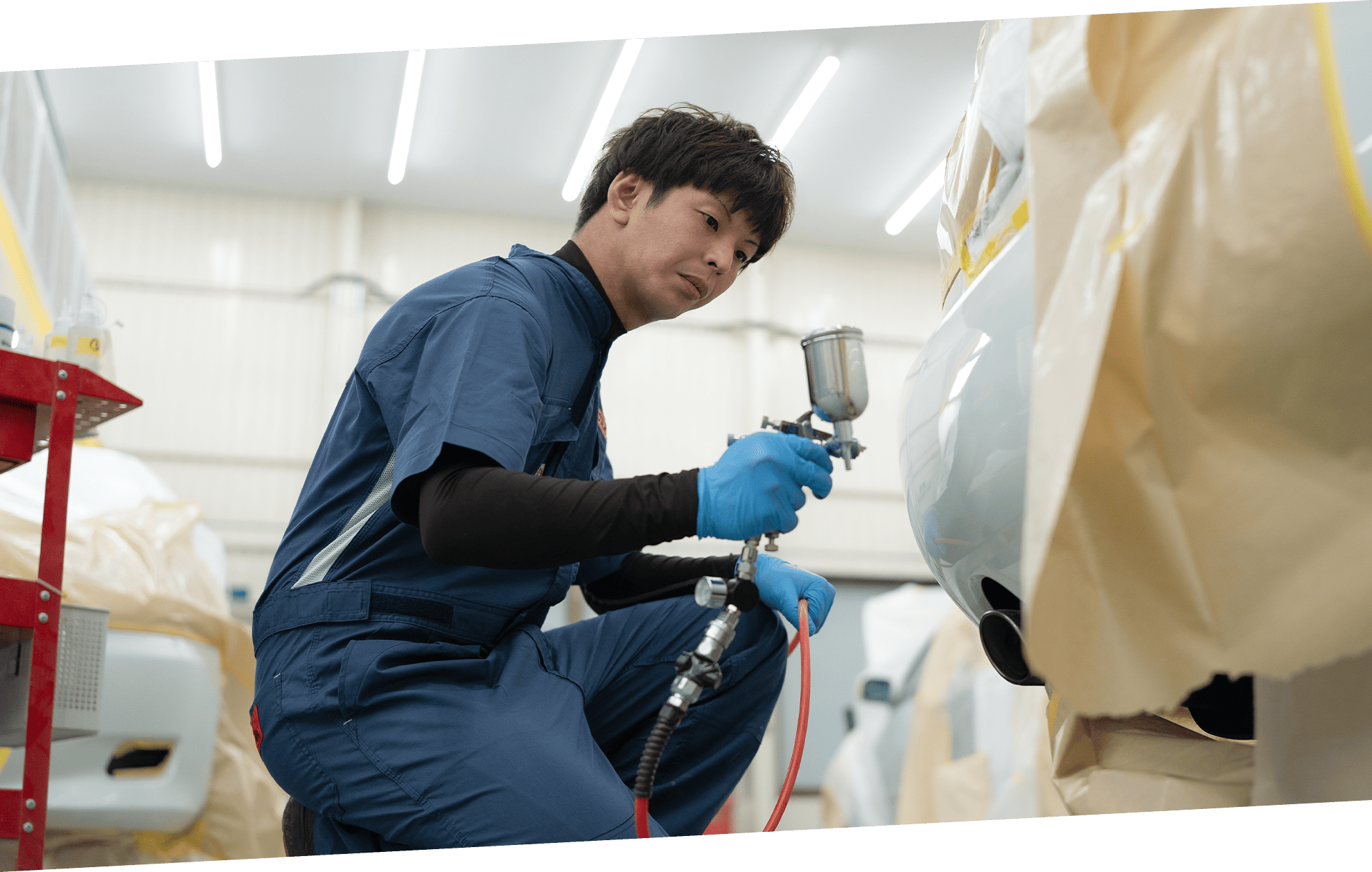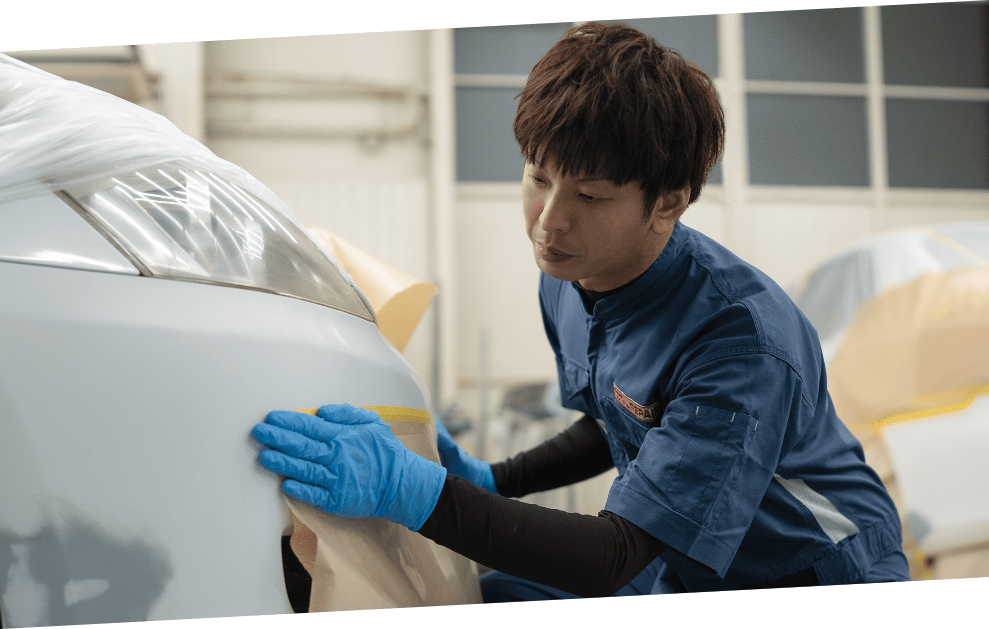 バンパーやフェンダー、ドアなど自動車外装に生じた傷をクイックに修復し、お客様への納車をスムーズにするお手伝いをさせていただきます。水性補修塗料を主に使用するため、安全面に配慮した施工を実現。出張での施工を可能にしました。そのため一般的な板金修理よりも大幅に納期と価格を抑えながら、お車を綺麗にさせていただきます。